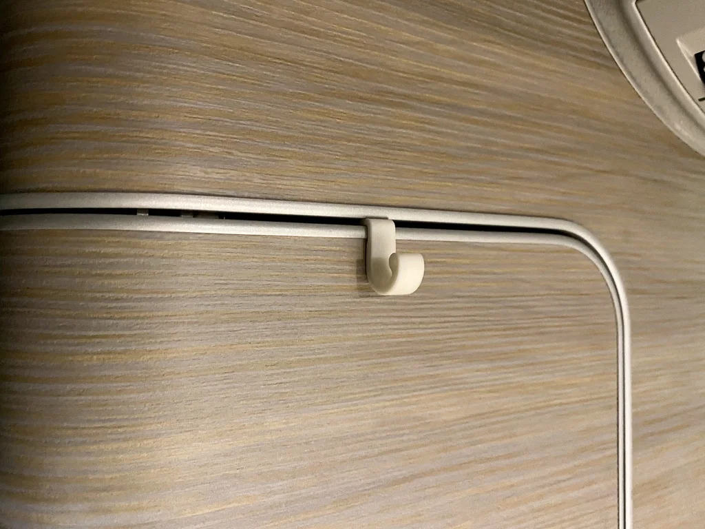 Mẫu móc treo tủ (bản đơn) cho VW T5/T6 California, lấy cảm hứng từ kiểu móc VW California (rail + gap). Gợi ý in: layer 0.2mm, infill 40%, dùng PLA (Multec PLA HT).