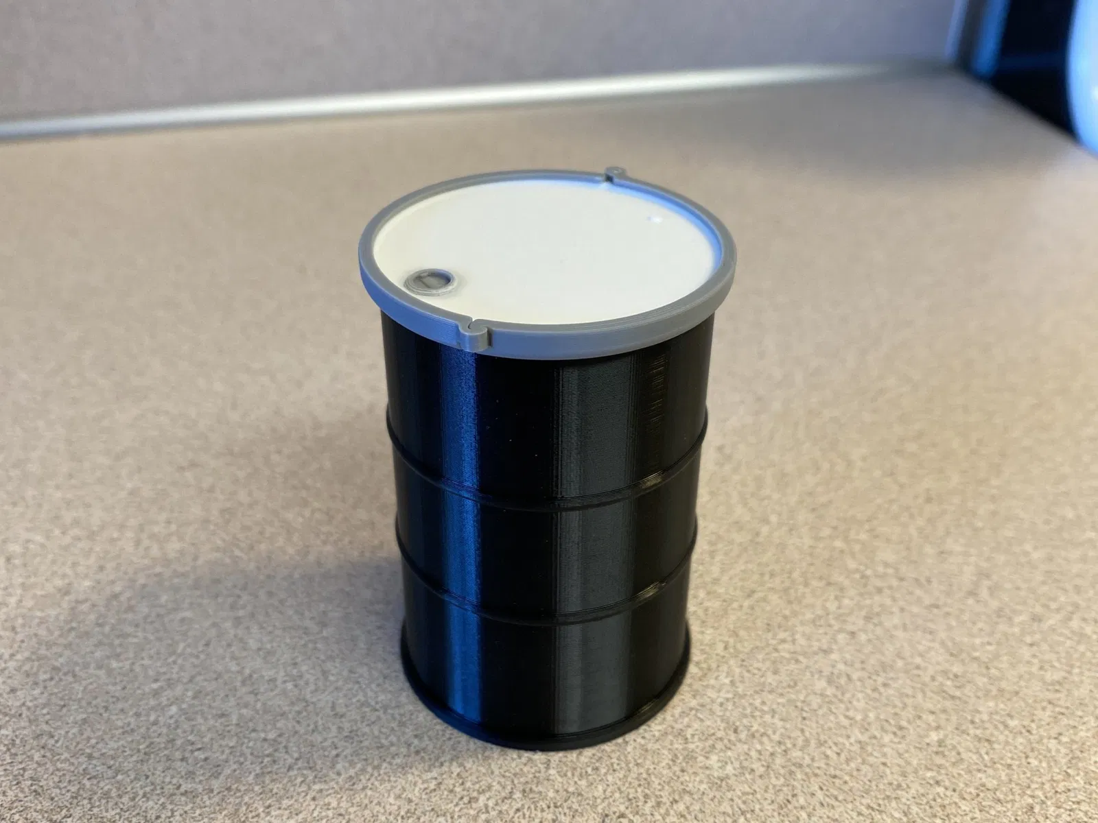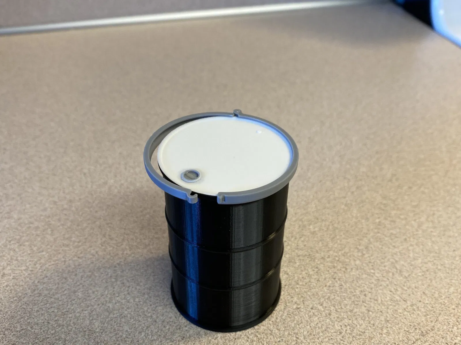 Dưới đây là phiên bản thu nhỏ của thùng 55 gallon của Angrysquirel với vòng giữ nắp và chi tiết hơn trên nắp.
