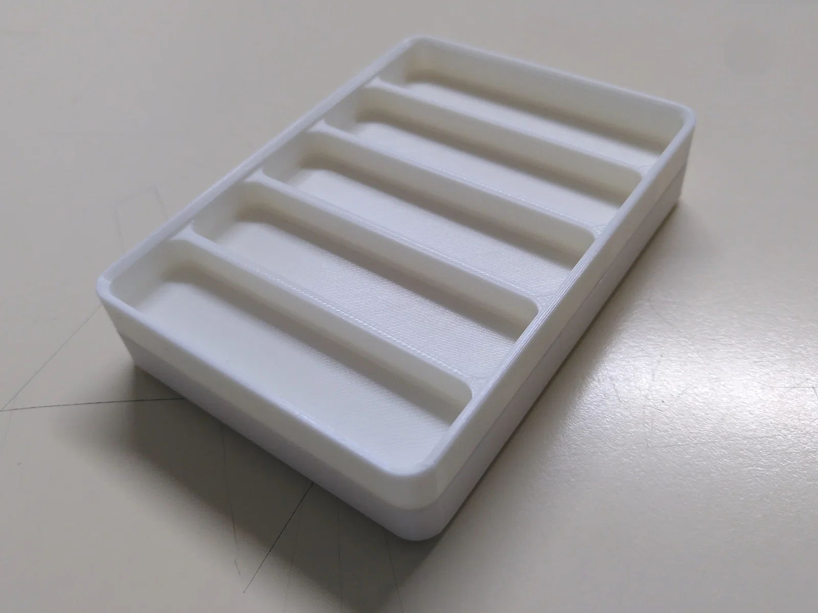 Một khay nhỏ (78.8mm x 109.8mm x 12mm) để phân loại và giữ đồ ngăn nắp, ví dụ như khi sửa chữa thiết bị điện tử. Khay giúp bạn theo dõi đúng thứ tự đã tháo các linh kiện nhỏ ra. Nhiều khay có thể chồng lên nhau.
