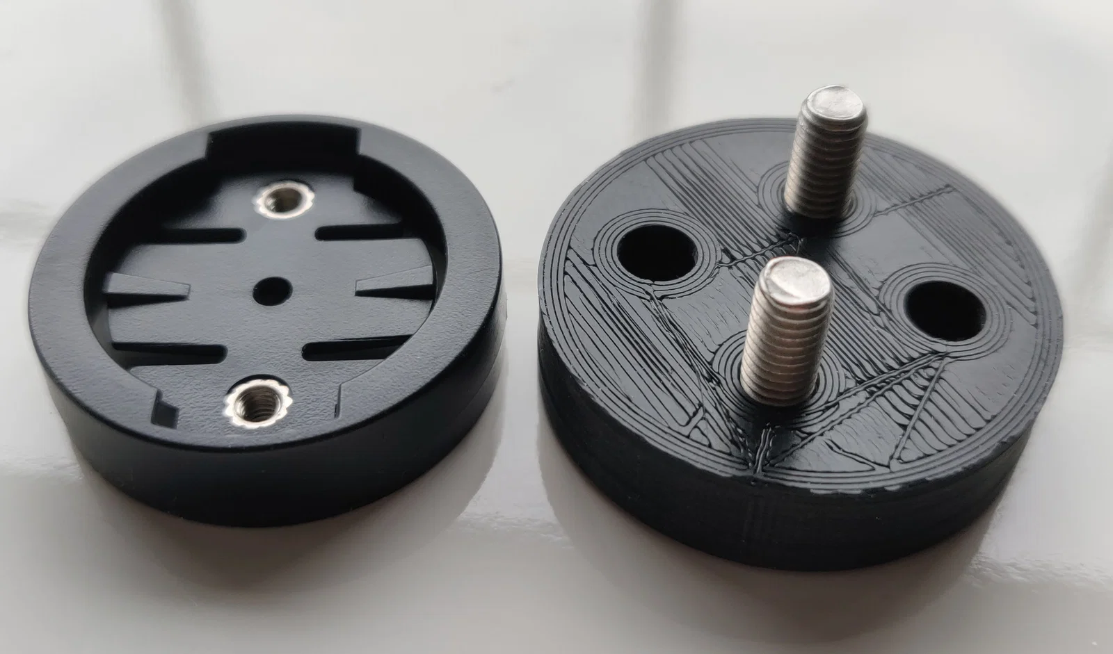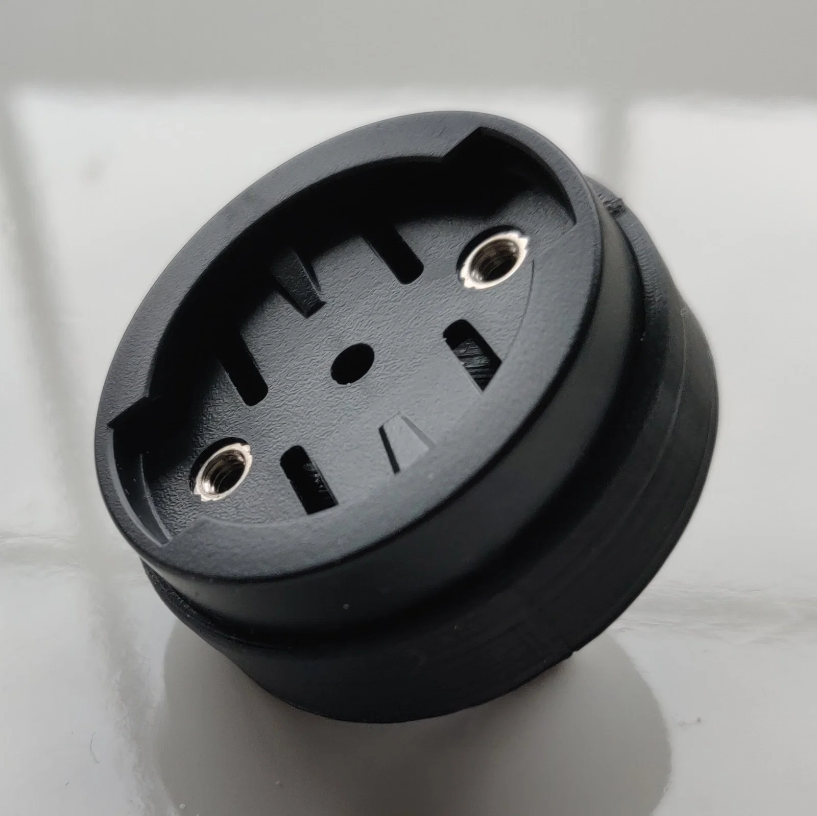 - Garmin quarter turn insert. Đường kính 33.3mm, lỗ bắt vít 3mm và cách nhau 20mm, mỗi lỗ cách tâm 10mm.