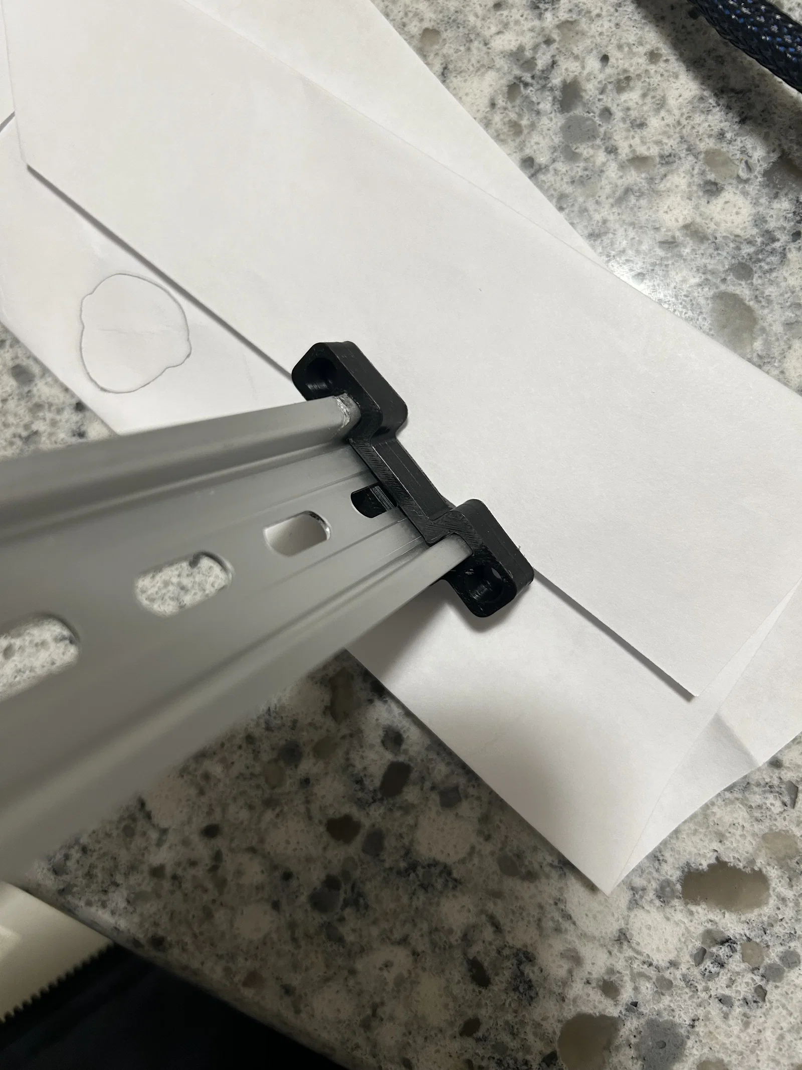 Kẹp Aluminum DIN Rail Clip dành cho thanh nhôm DIN rail mua từ Amazon (7.5mm x 35mm). Fit rất khít theo profile gốc. Cần 4 bản LEFT và 4 bản RIGHT; đã bổ sung kẹp “RIGHT” để lắp nhanh hơn.