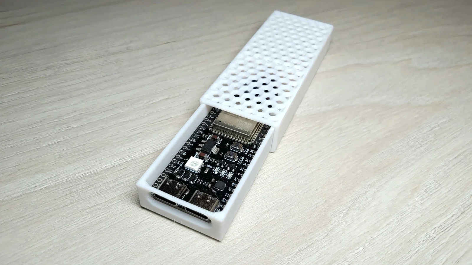 Cố định ESP32-S3: Chỉ cần bấm (click) ESP32-S3 vào đúng vị trí trong vỏ, đảm bảo khít và chắc.