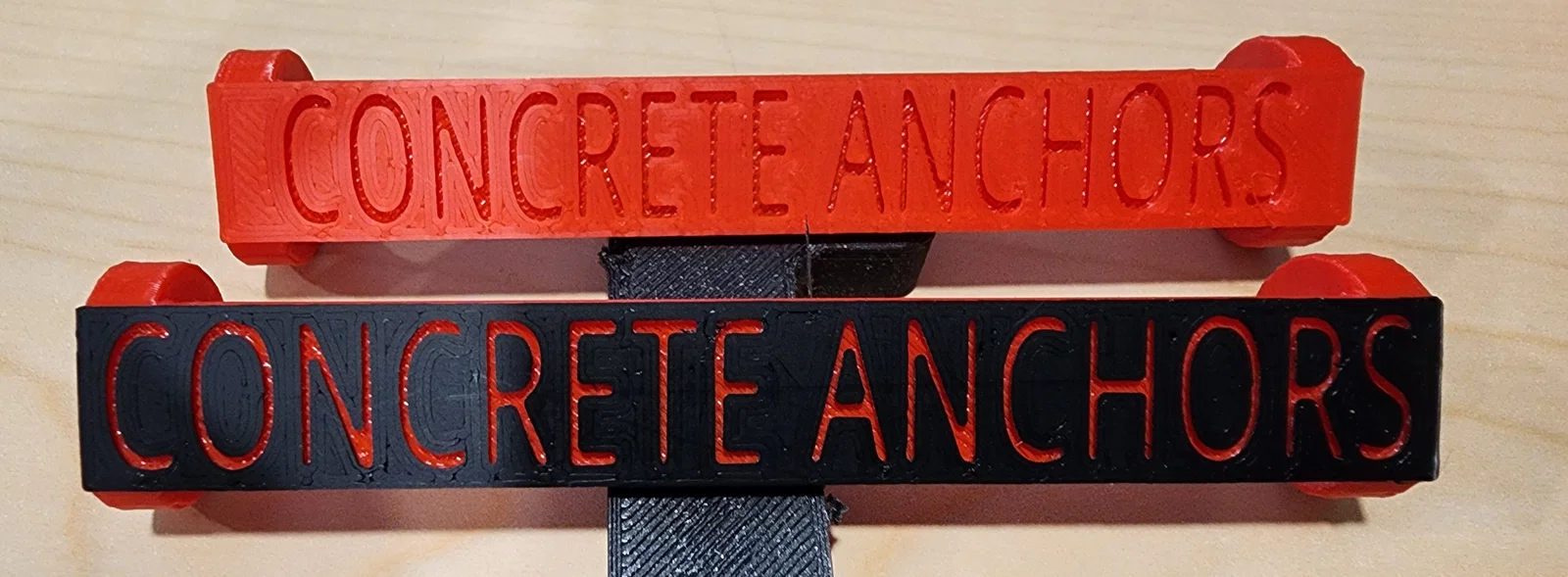 In không cần support. Có hơi stringing một chút nhưng không ảnh hưởng khi dùng, nếu muốn thì có thể dùng dao rọc giấy cạo sạch. Mình in úp mặt chữ xuống, chạy 2–4 lớp màu đen rồi pause để đổi sang màu trắng. Cách này cho chữ nổi bật, nhìn rõ mà không cần làm gì phức tạp.