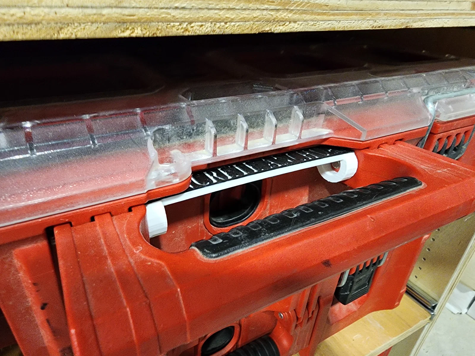 Nhãn gài (clip-in) cho Milwaukee Packout Organizer 48-22-8430, thiết kế ôm khít và ngàm lớn hơn để bền chắc. In không cần support, chữ editable; có thể in úp chữ và đổi màu filament để chữ rõ nét.