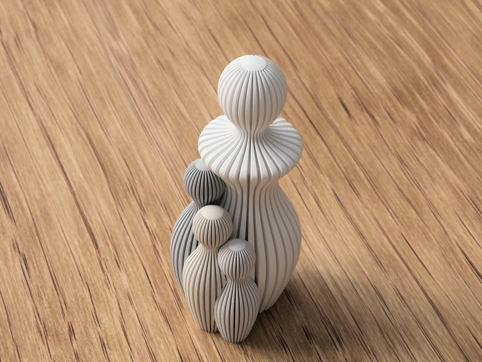 Mẹ và các bé được in riêng, rồi có thể đẩy ráp lại với nhau để hoàn thiện bức tượng. Tượng thể hiện sợi dây gắn kết không thể phá vỡ giữa cha/mẹ và con cái. Mẫu cao 130 mm và bạn cũng có thể scale lên theo ý thích.