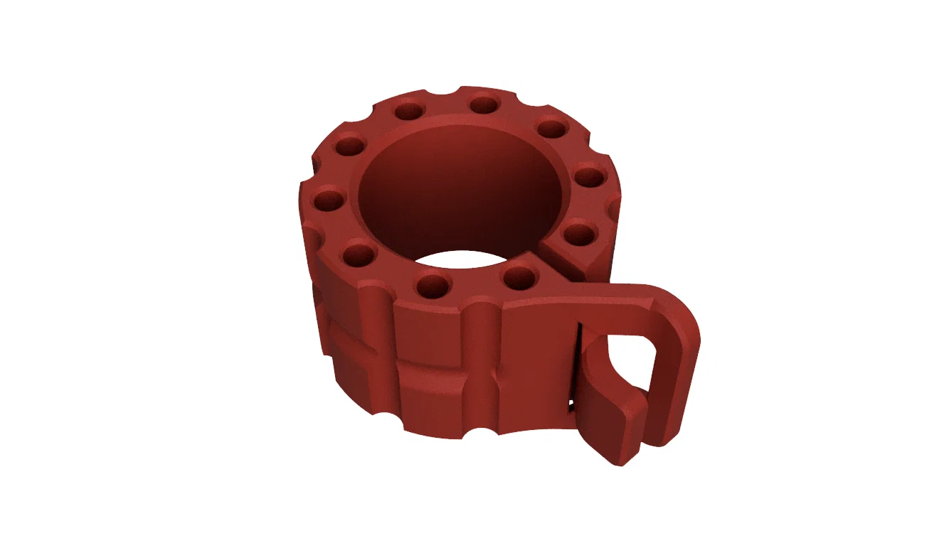 Vòng kẹp tạ 1 tay cho axle bar và các specialty barbell nhỏ hơn bar tiêu chuẩn (ống sch pipe 1.900"). In PLA dùng ổn, có thể chỉnh scale/infill/perimeters để vừa khít; nên tháo ra khi không dùng.