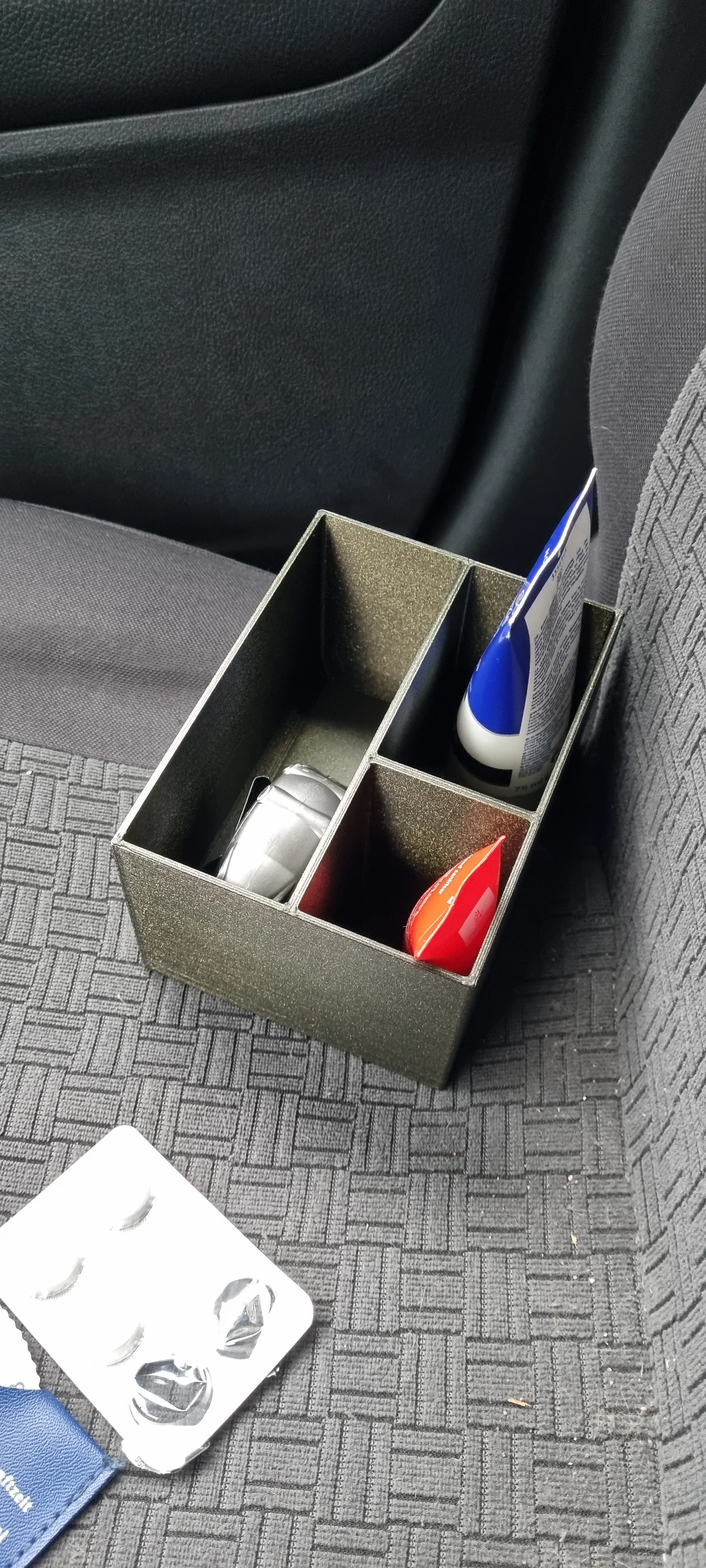 Bộ khay trên và khay dưới thiết kế để lắp vừa hộc trung tâm (center console) của Mitsubishu Outlander PHEV. Gợi ý in khay trên úp ngược với nhiều support để tạo đáy nhám, giúp đồ ít trượt.