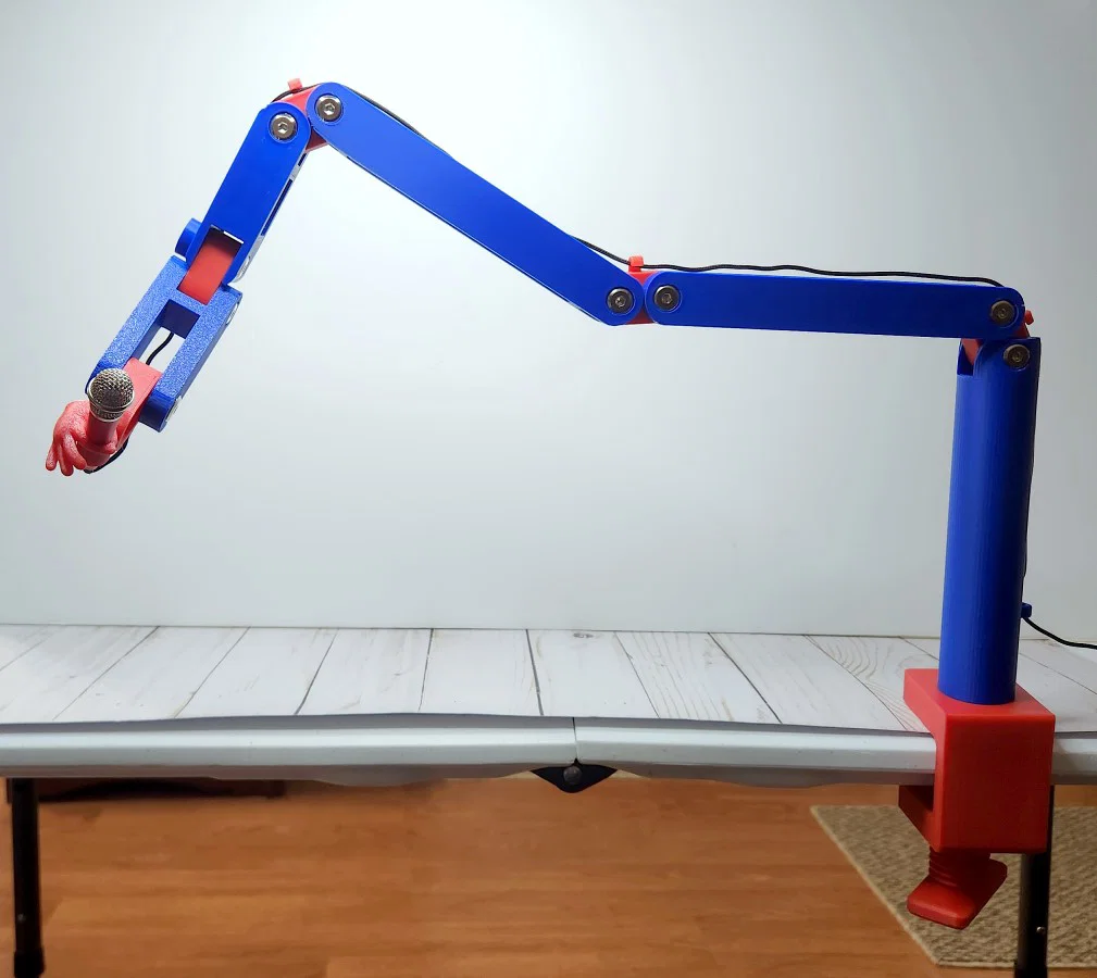 Tay boom cho micro mini, kết cấu đủ cứng để adapt qua micro lớn. Gồm 2 file giá đỡ (có/không có bàn tay tí hon). Dùng ốc M6x20mm cho khớp; đế tròn tăng xoay. Infill: đế 30%, phần khác 15%.