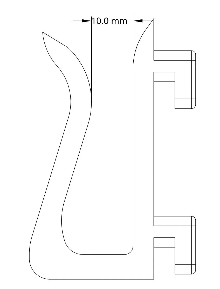 Khe hở khi chưa có lực căng là 10 mm và nó nên có thể uốn ra khoảng 13–14 mm. Bạn nên test trước để đảm bảo không bị gãy. Khuyến nghị dùng vật liệu như PETG vì có khả năng uốn dẻo tốt hơn và ít bị gãy hơn so với PLA (PLA vẫn dùng được, chỉ cần cẩn thận).