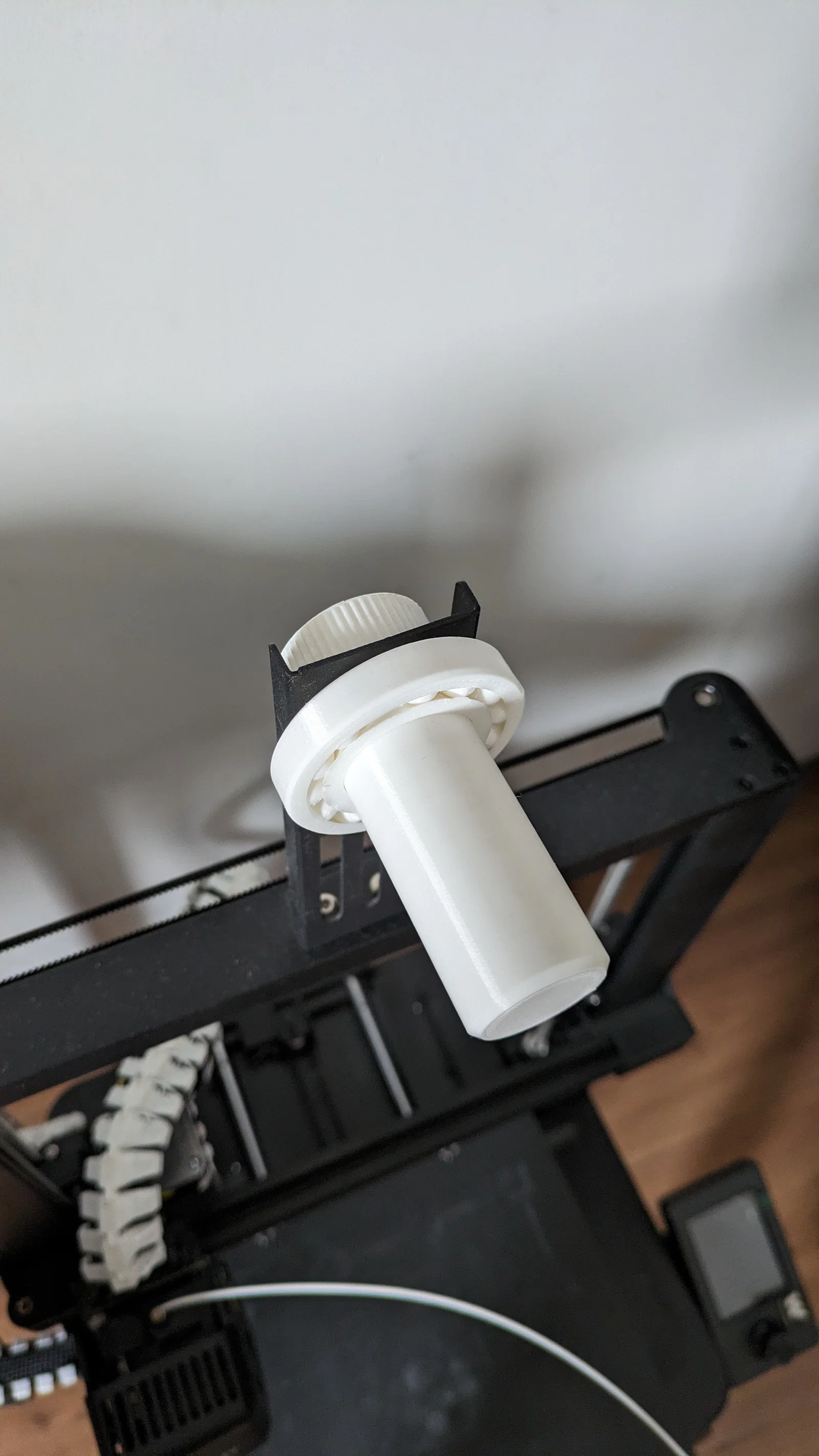 Mình làm cái spool roller cho E3V3SE vì cái spool holder zin kéo cuộn filament quá nhiều, có thể không tốt cho extruder.