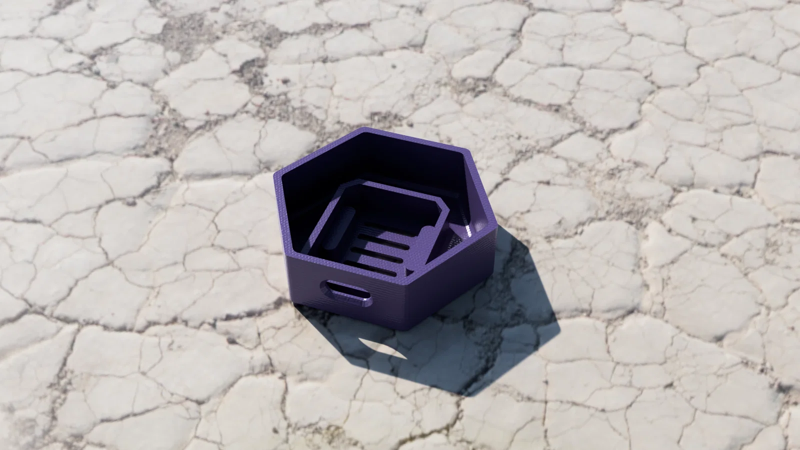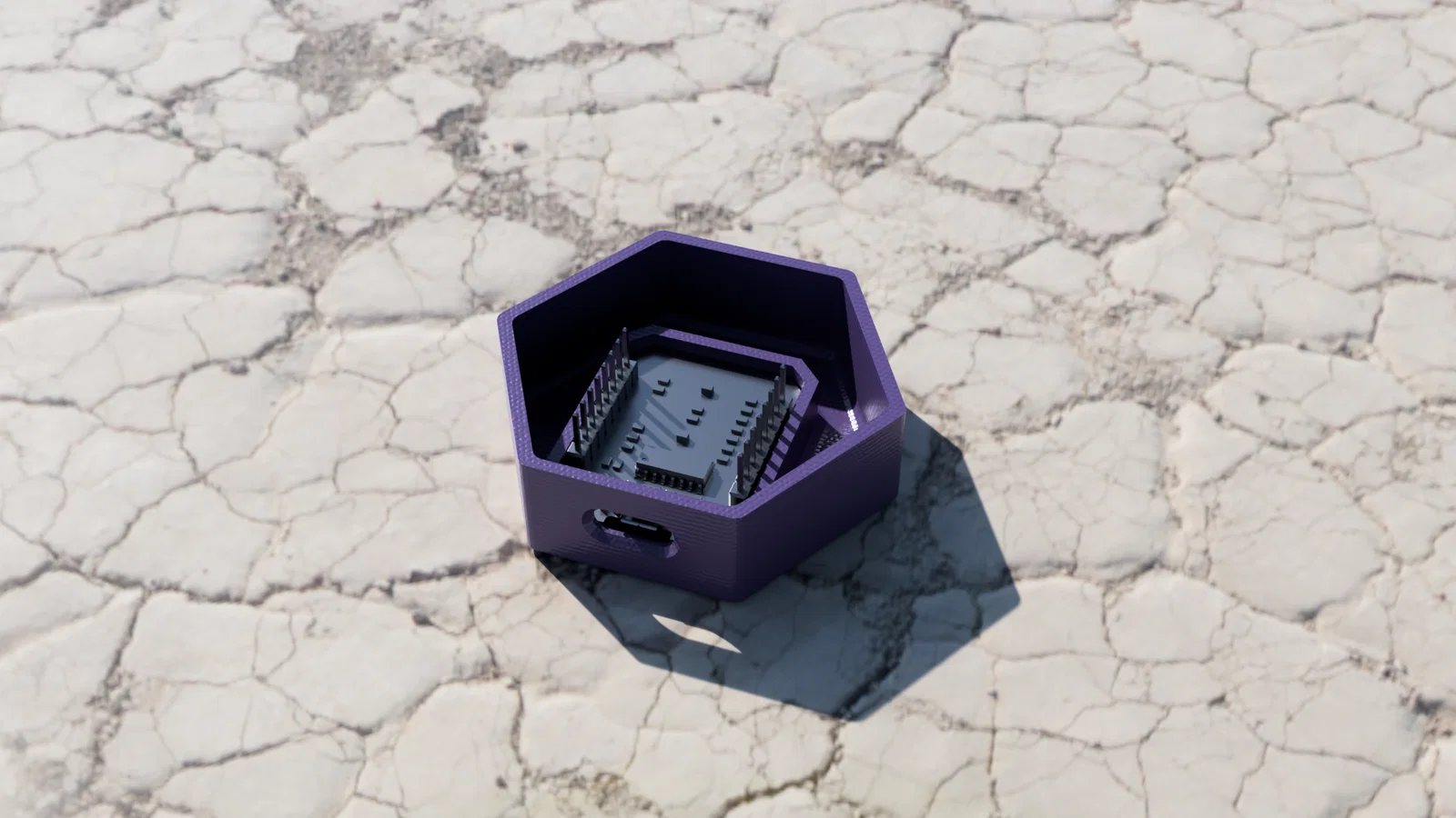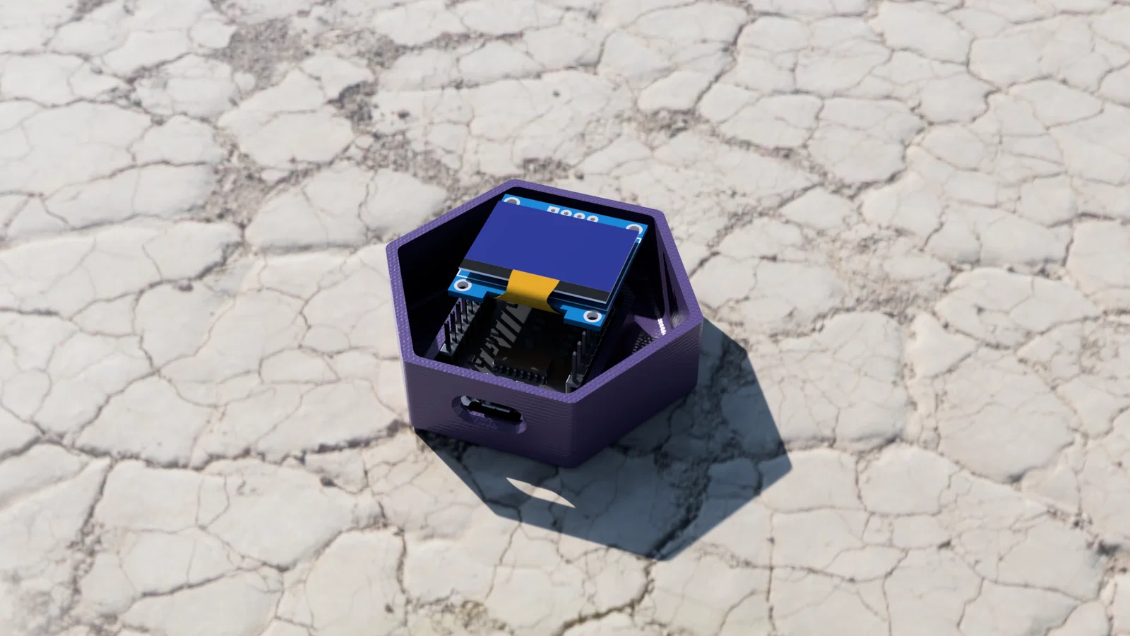 Hộp đủ lớn để đặt vừa Wemos D1 Mini và OLED 128x64 một cách chắc chắn, đồng thời chừa không gian cho dây kết nối. Có một khe hở ở một đầu để truy cập cổng của Wemos D1 Mini (như cổng USB), và một khe hở ở đầu còn lại cho màn hình OLED.