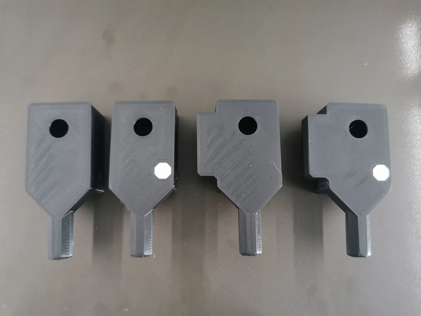 Với cách này bạn không cần in clip và con ốc thường. Chỉ việc nhấn 3 viên nam châm (5 x 1.5 mm) vào các lỗ, và nhớ ấn chìm xuống dưới mặt một chút để khỏi làm trầy bề mặt bạn gắn lên.