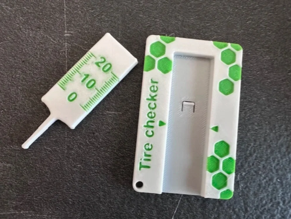 Thước đo độ sâu gai lốp giúp kiểm tra nhanh độ mòn lốp với các mốc 1mm, 1.6mm (EU), 2–6mm. Có print profile thứ hai để dùng chữ riêng. Fit rất khít, cần chỉnh Filament Flow chuẩn để phần giữa trượt mượt.