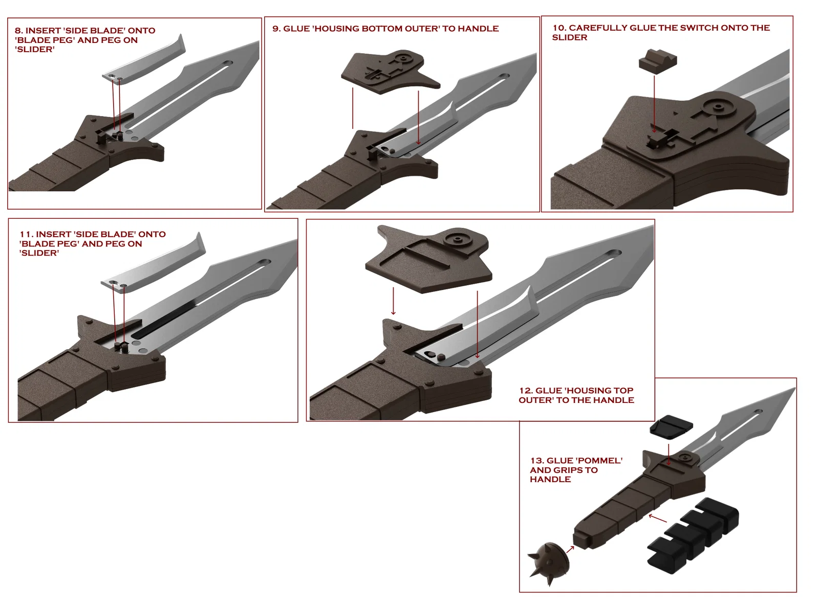 Lưu ý: Dao sau khi lắp xong khá to, dài khoảng 16 inch (khoảng 40cm) giống đạo cụ gốc.