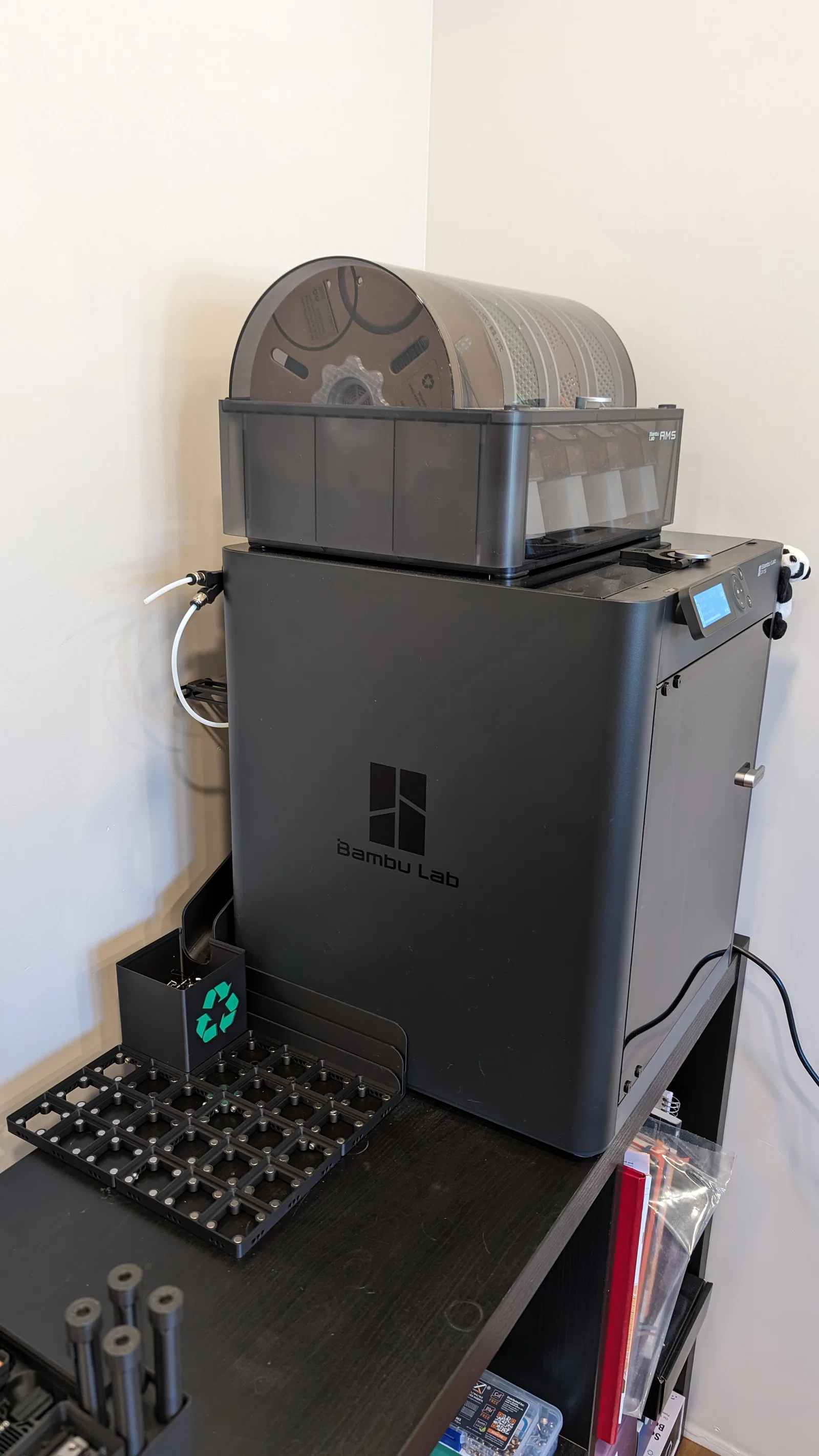 Mẫu này tương thích với KyleWarren và Screw Together Baseplate, nên bạn có thể mở rộng lưu trữ Gridfinity cho Bambu theo nhu cầu.