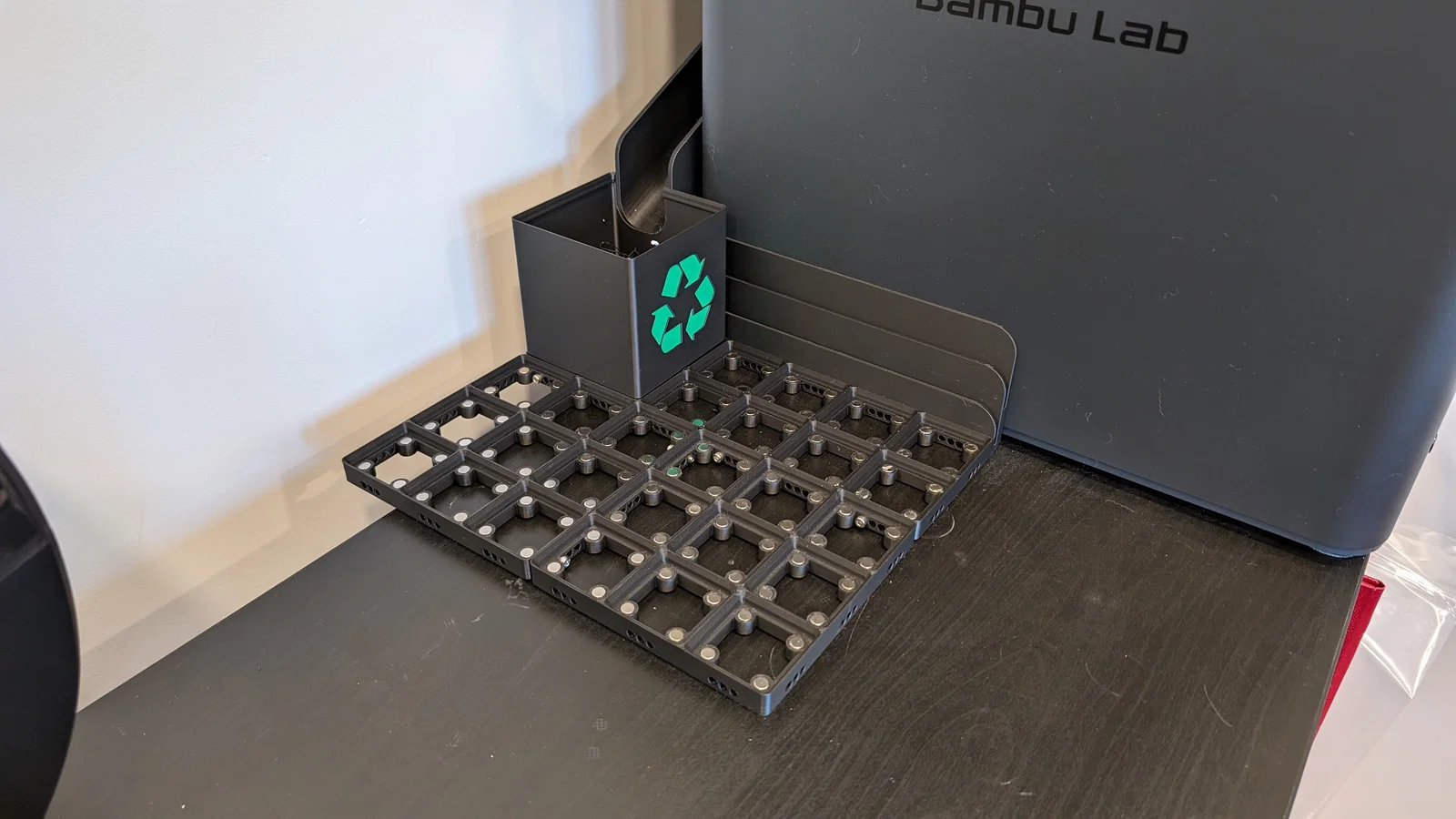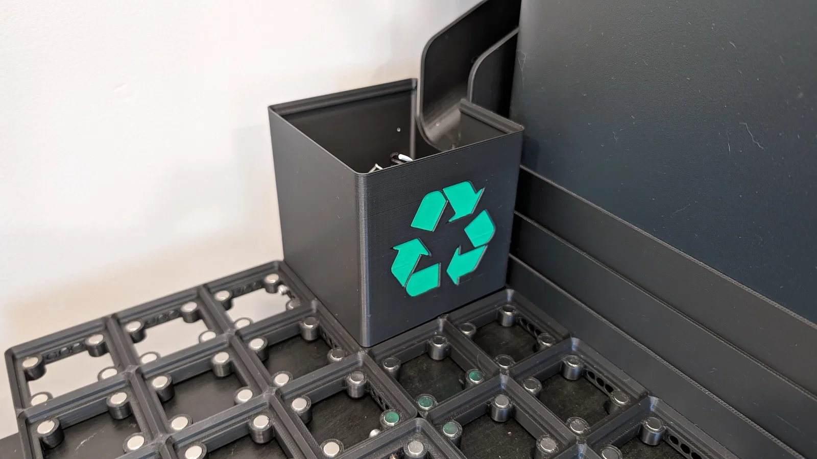 - Lắp nam châm vào Gridfinity Loo Bin để cố định nó vào baseplate. Gợi ý, coi thử Jigfinity!!