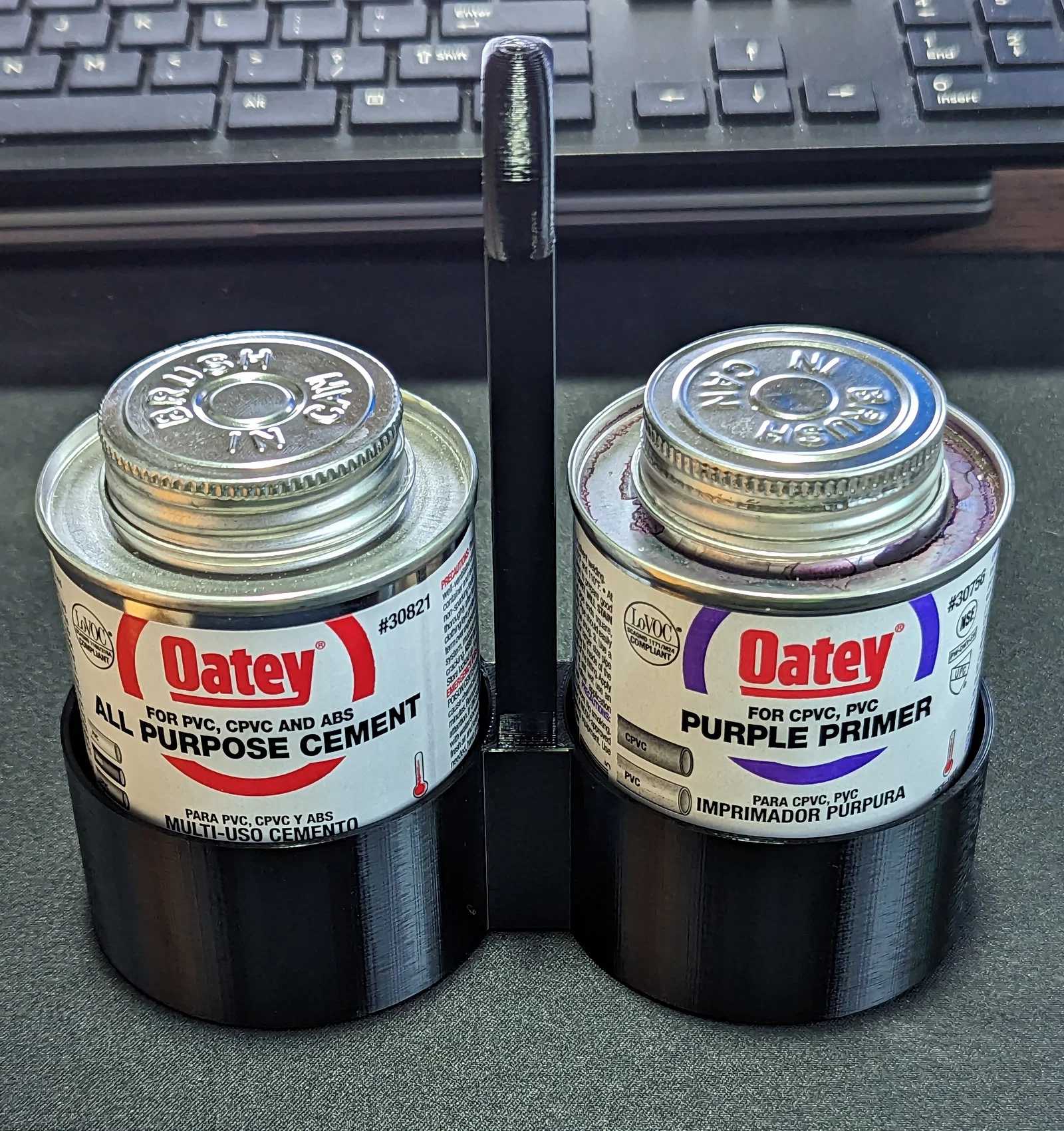 Bạn là thợ sửa chữa hay là một người đam mê tự tay lắp đặt các đường ống nước tại nhà? Chắc hẳn bạn đã quá quen thuộc với cảnh vừa phải cầm lon keo dán PVC, vừa phải cầm chai dung môi (primer) mỗi khi thi công. Việc di chuyển giữa các vị trí lắp đặt trở nên phiền phức và dễ gây đổ vỡ nếu không có thiết bị hỗ trợ. Chính vì thế, mẫu khay nhựa 3D này được thiết kế để giải quyết hoàn hảo vấn đề đó, giúp bạn cố định cả hai lon keo và dung môi vào một chỗ, mang đi đâu cũng vô cùng dễ dàng.