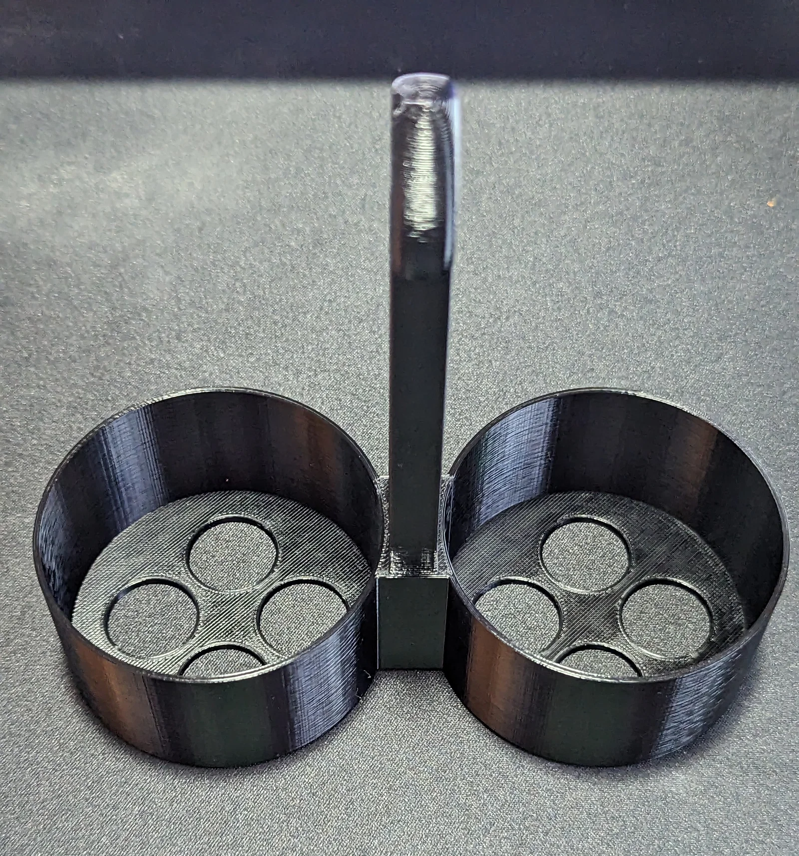 Phụ kiện in 3D này được thiết kế dạng hai vòng tròn chắc chắn, kết nối với nhau bằng một tay cầm ở giữa giúp bạn dễ dàng xách bằng một tay. Thay vì phải đi lại nhiều lần hay loay hoay tìm kiếm chai dung môi đang để quên ở đâu, bạn chỉ cần đặt cả hai lon vào khay, cầm quai xách và di chuyển đến mọi ngóc ngách của công trình. Đây không chỉ là một phụ kiện đơn thuần mà còn là giải pháp giúp tối ưu hóa thời gian làm việc, giữ cho không gian thi công luôn gọn gàng và ngăn nắp.