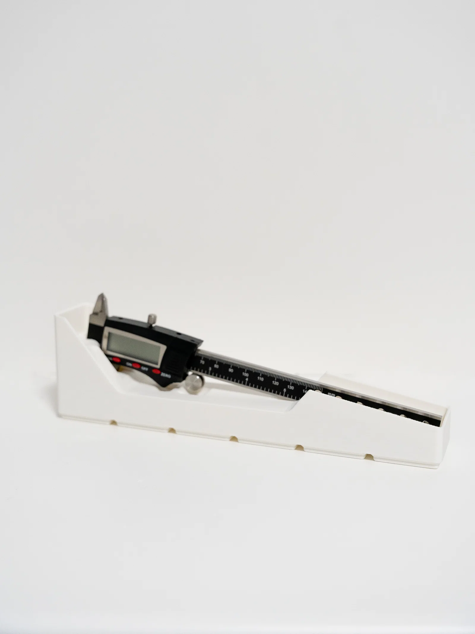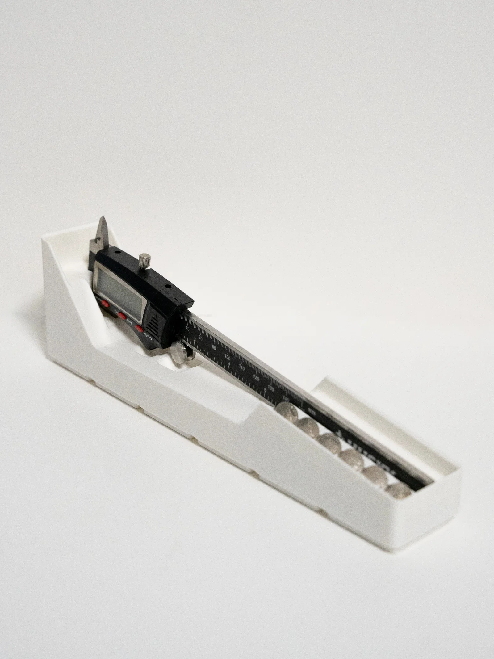 Sản phẩm này được thiết kế theo tiêu chuẩn Gridfinity, nghĩa là bạn có thể dễ dàng gắn nó vào bất kỳ tấm đế Gridfinity nào mà mình đang sử dụng trong xưởng hoặc góc làm việc cá nhân. Cấu trúc khay được tinh chỉnh để nâng đỡ phần đầu thước kẹp, giúp bảo vệ cảm biến và màn hình LCD khỏi những va đập không đáng có. Bên cạnh đó, ngăn chứa pin được bố trí thông minh ngay cạnh thân thước, đảm bảo những viên pin nhỏ bé không bị thất lạc trong quá trình làm việc.