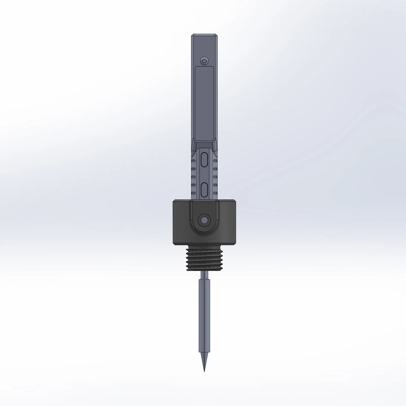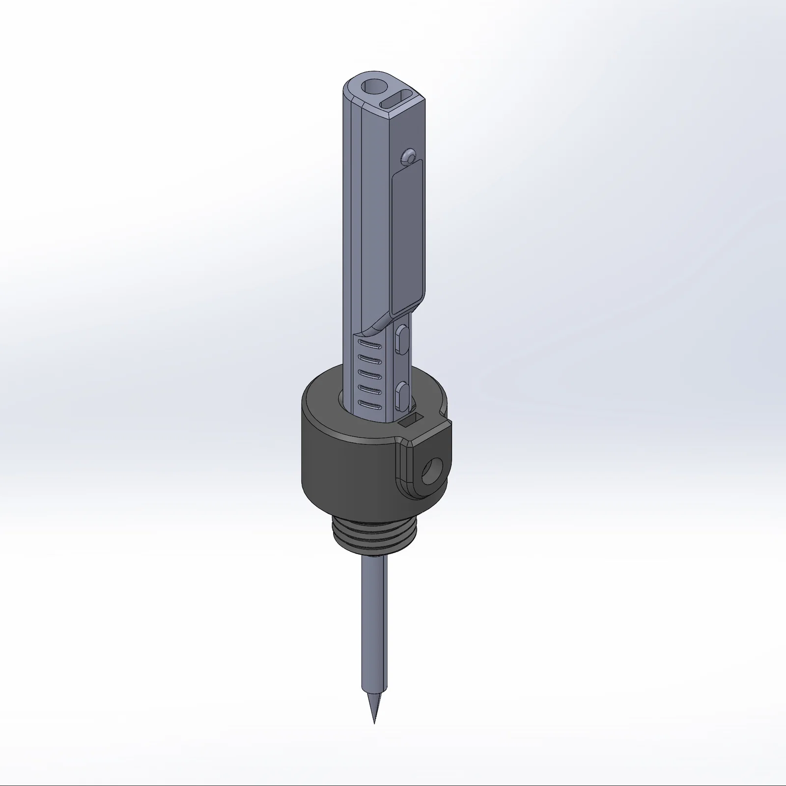Adapter housing nhỏ để gắn mỏ hàn TS101 lên Dremel Workstation 220, phục vụ ép/đóng heat inserts. Lắp vừa chính giữa Dremel holder và siết cố định bằng đai ốc 3/4" x 12rpi. In ASA hay PLA đều được.