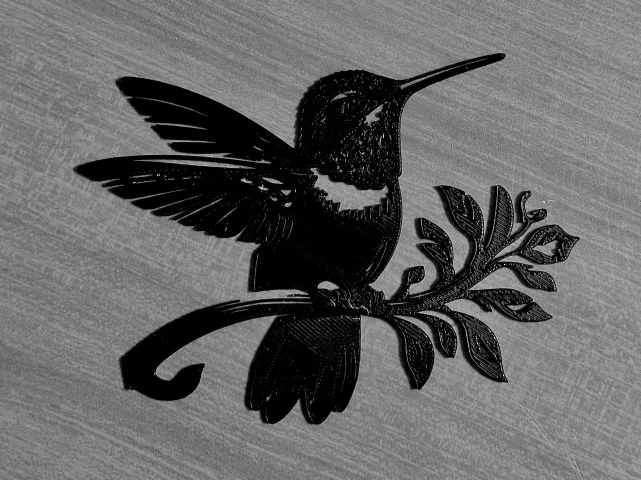 Mẫu Wall Art hình chim ruồi dạng silhouette có rãnh phía sau để gắn nam châm 10mm x 1mm. Có thể scale trực tiếp trong Bambu Studio, nhưng không được thay đổi trục Z để tránh lệch kích thước chỗ đặt nam châm.