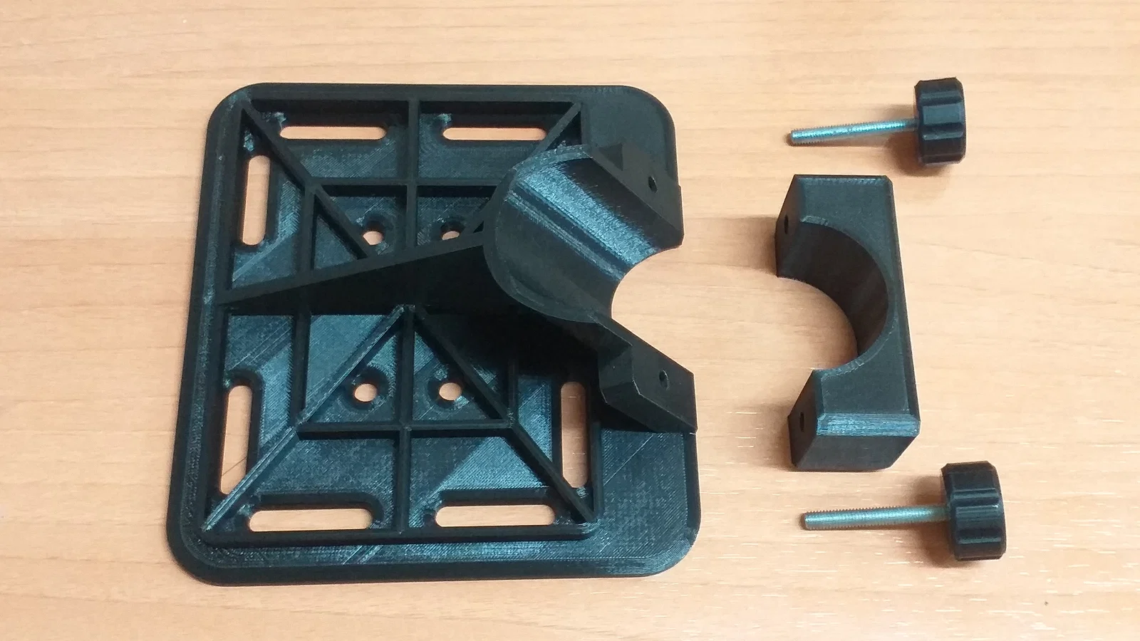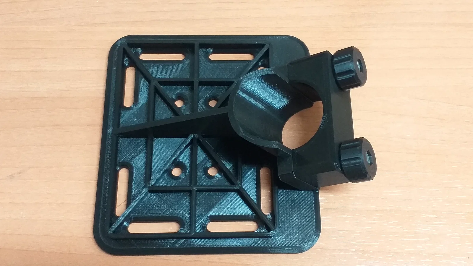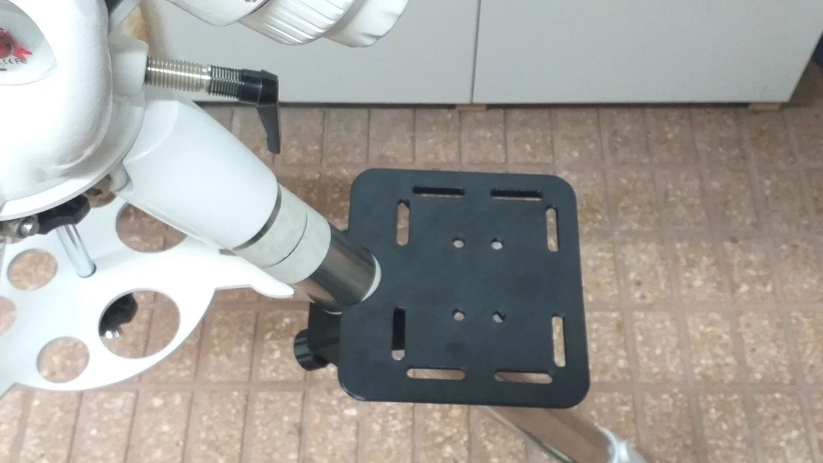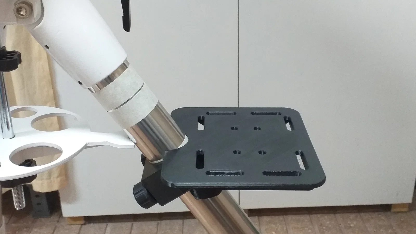 Phiên bản khay mới cho ngàm SkyWatcher EQ6 R Pro, cứng cáp hơn và có rãnh. Lắp được cho ống 2" với góc 56° để giữ nằm ngang. Cần 2 bu lông M6x55 và 2 ê-cu M6; nên dán painter's tape để chống xoay.