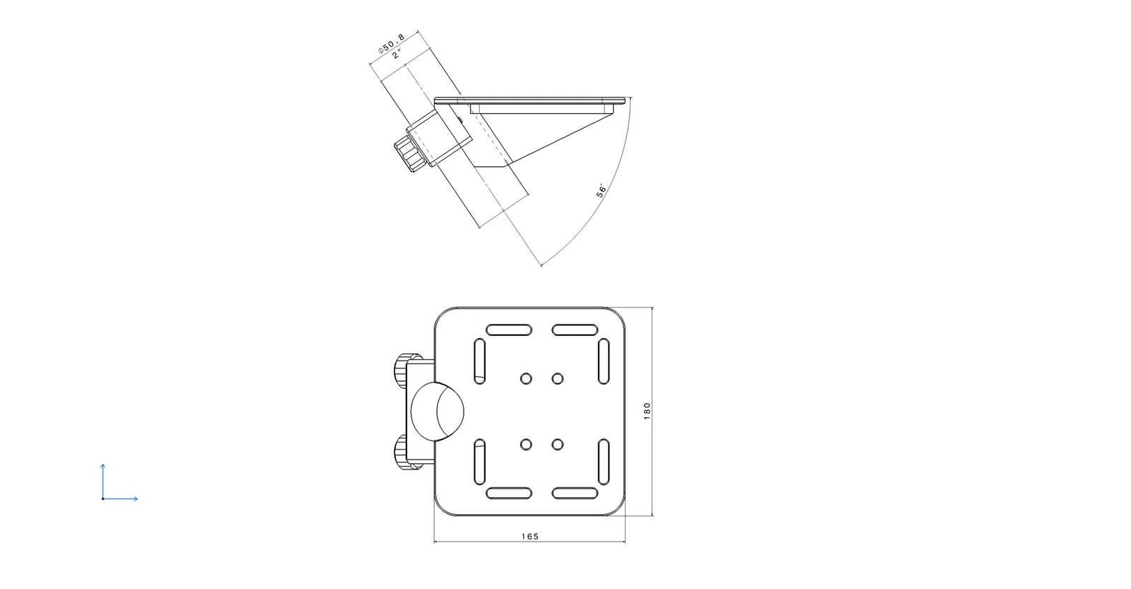 Khay này có thể lắp trên bất kỳ ngàm nào có ống đường kính 2" và góc 56°, để giữ cho khay nằm ngang.