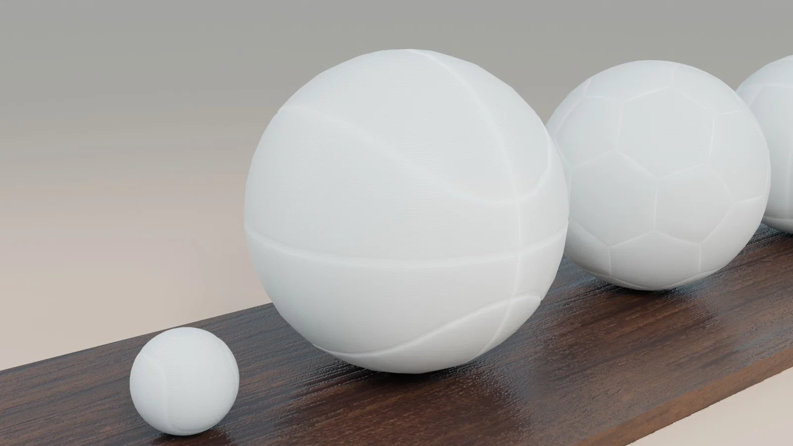 Bộ model gồm nhiều loại bóng thể thao (golf, tennis, baseball, basketball, football/soccer, volleyball) với tùy chọn bóng nguyên trái và nửa trái. Tất cả được scale 25%, khuyến nghị 20% infill (càng nhiều càng nặng).