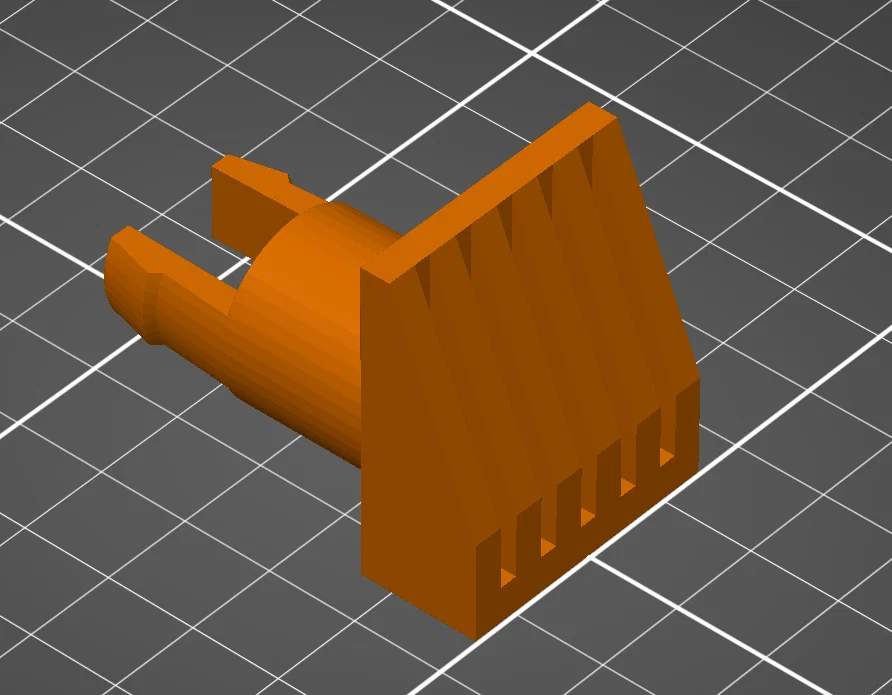 Mình cố giữ đúng thiết kế và kích thước gốc, nhưng có chỉnh nhẹ vì phần này sẽ in 3D chứ không phải ép nhựa (injection molded). Mình bỏ các gân (ribs) trên phần trụ và làm đặc luôn. Đồng thời mình tối ưu số lượng và khoảng cách gân ở đầu kẹp để in được với 4 perimeters.