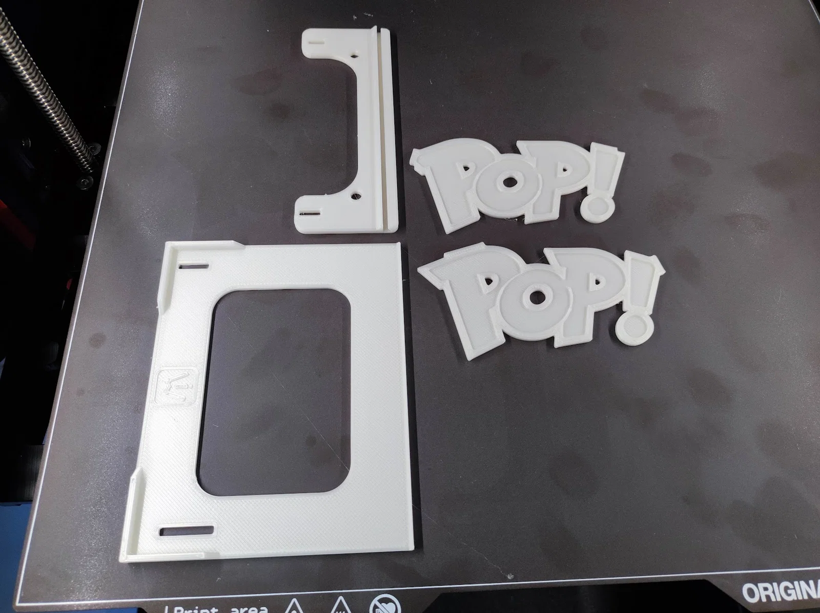 Kệ Funko Pop đơn, dùng logo POP làm phần đỡ. In trên Prusa XL với nozzle 0,6 bằng Prusament PLA Vanilla White, cấu hình 0.20 Detail, không supports, infill 100%. Lỗ bắt vít chuẩn M5.