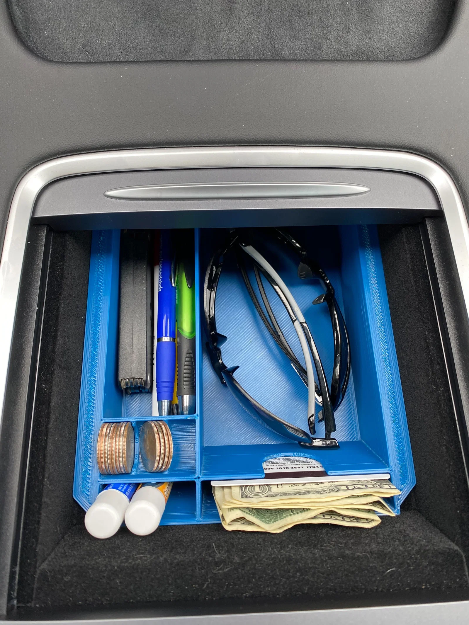 Mình thấy phần dài thêm 1" của khay này tạo khác biệt nhiều nhất. Mình từng tìm và in một mẫu khay phổ biến khác, nhưng nó bị đẩy vào quá sâu phía trước, khiến rất bực vì khó luồn ngón tay xuống dưới cửa trượt của Tesla để kéo khay ra. Làm khay dài hơn thì các ngăn phía trước lúc nào cũng dễ với tới và lấy đồ.