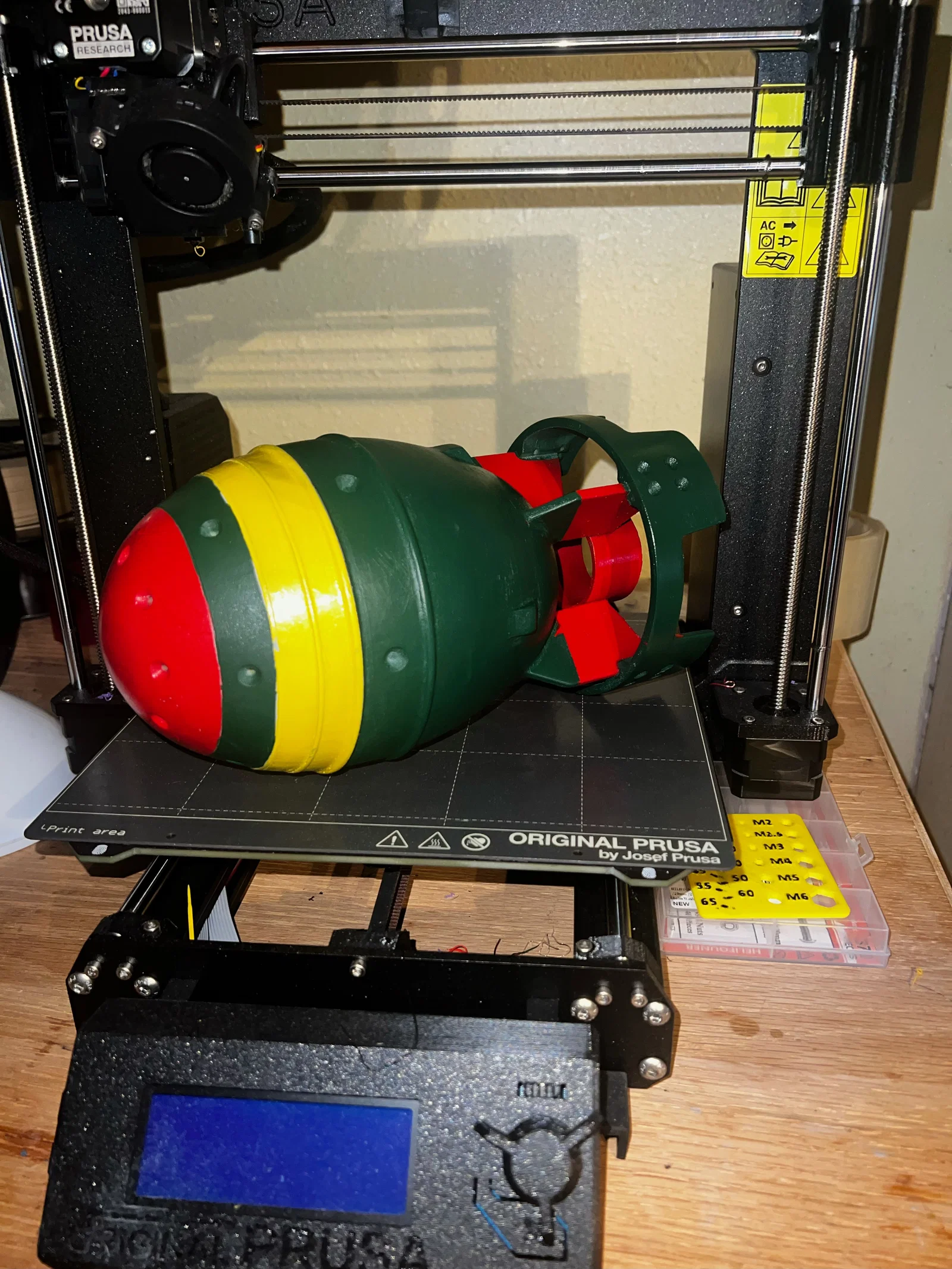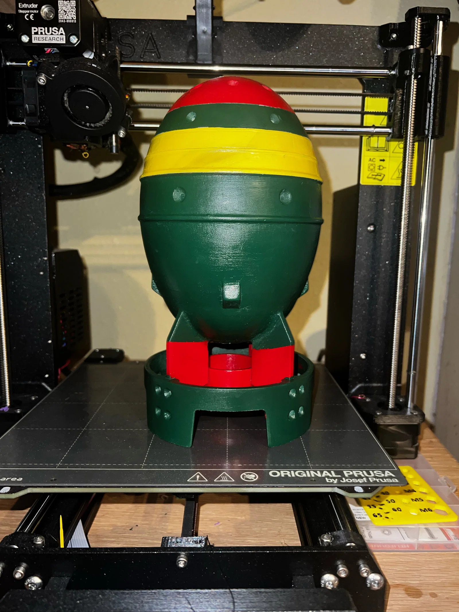 - Sáng tạo: Bạn có thể in các phần bằng nhựa với màu sắc khác nhau (như xanh, đỏ, vàng) để tạo nên phiên bản Mini Nuke sống động giống như trong hình mà không cần tốn công sơn lại.
