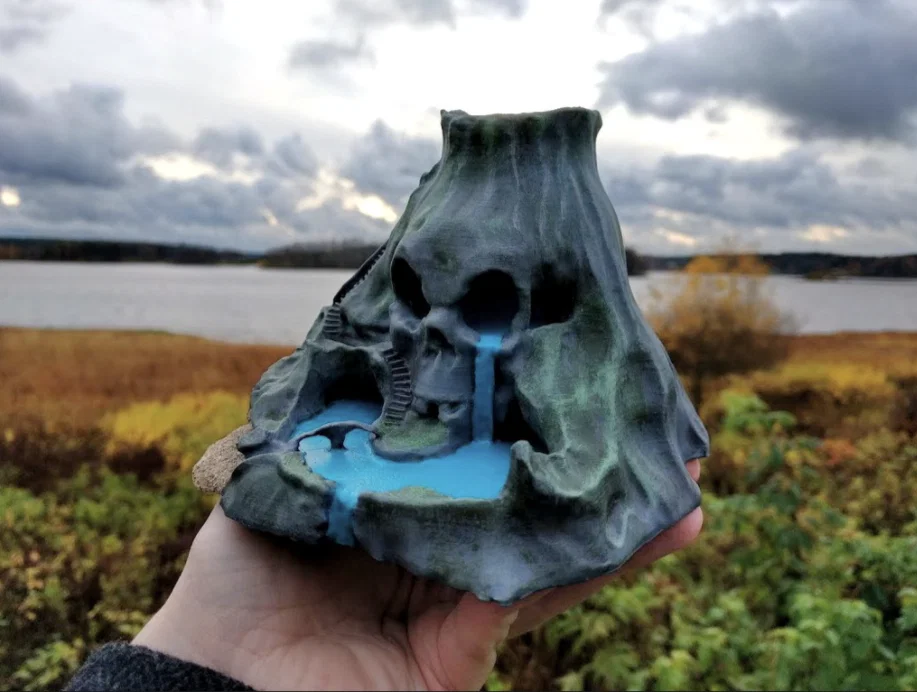 Một hòn đảo theo chủ đề đầu lâu. Dễ in, hoàn toàn không cần supports. Cây cầu nhỏ là phần duy nhất không hợp để scale down, có thể sẽ không in ra được luôn. Ngoài ra thì mẫu này vẫn in được ở kích thước nhỏ; để mộc chưa sơn nhìn cũng khá ngầu nếu đặt một đèn LED phía dưới.