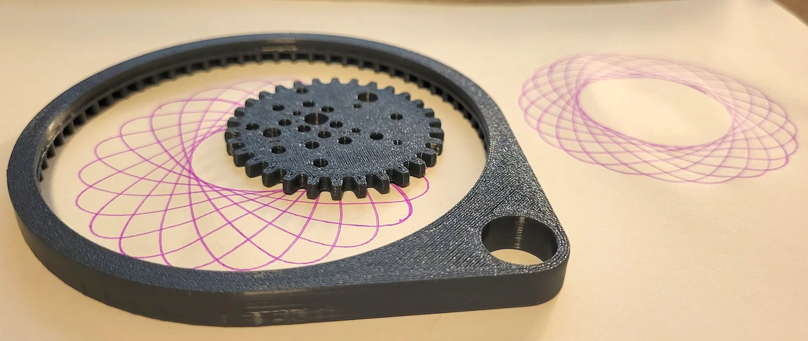 Bánh răng spiral dày 3mm và vòng ngoài dày 7mm. Nhờ vậy việc vẽ các đường xoắn (spirals) dễ hơn vì ít bị lắc, và độ ăn khớp giữa các bánh răng cũng tốt hơn.
