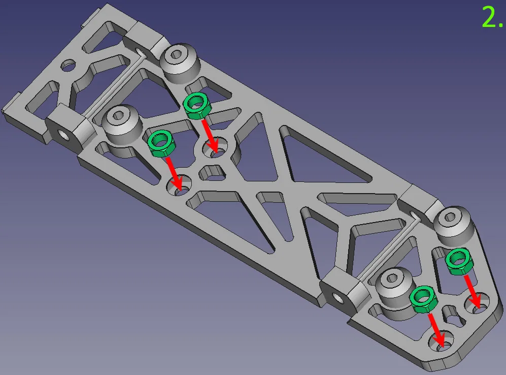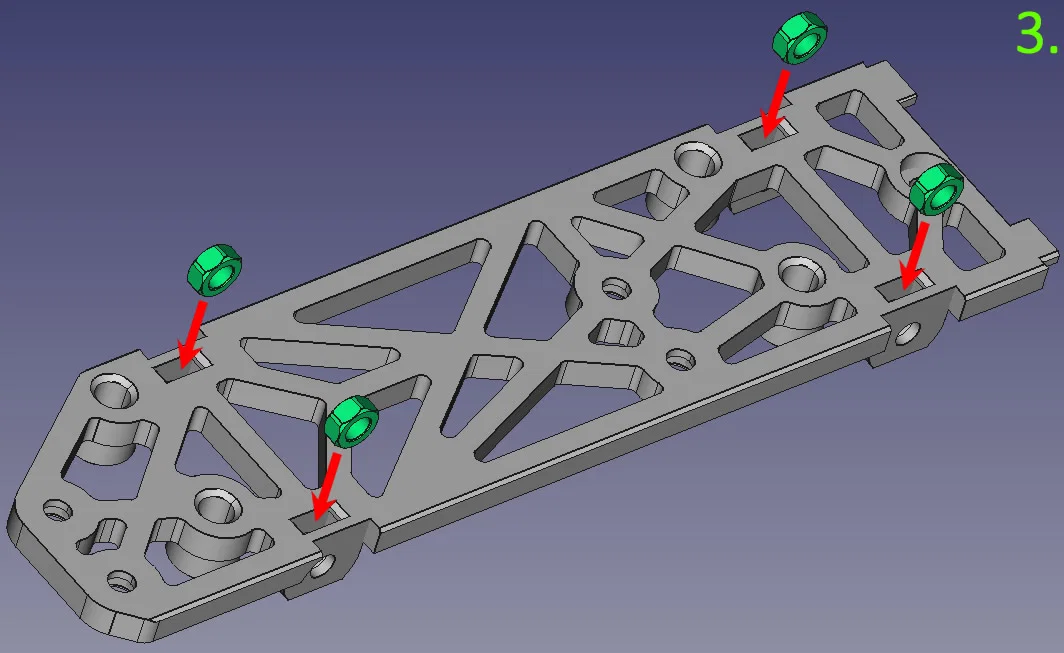 Front & side panels: ép đai ốc M3 vào đúng ổ, xem hình 2, 3 & 4.