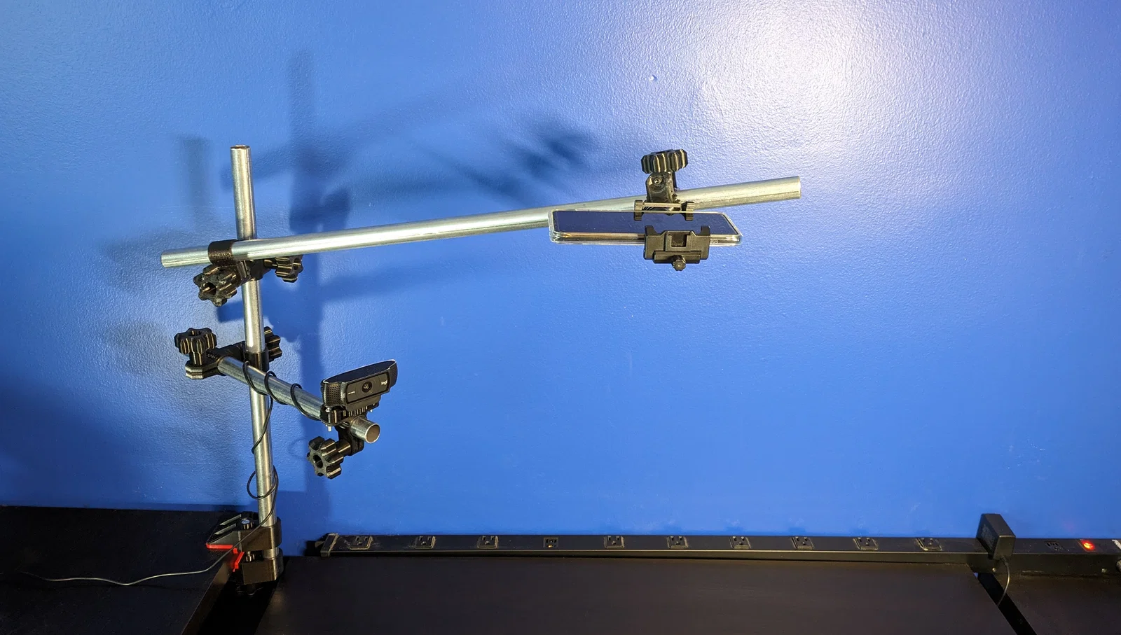 Mình thiết kế hệ này vì lúc mới bắt đầu stream, mình cần gắn và canh vị trí cả đống thiết bị như camera, đèn, và microphone. Ngân sách thì có hạn, mà đồ trên Amazon vừa lỏng lẻo vừa mắc — nghĩ tới chuyện bỏ $400 cho một đống tay đỡ ọp ẹp mà vẫn không xài ra gì thì đúng là xót!
