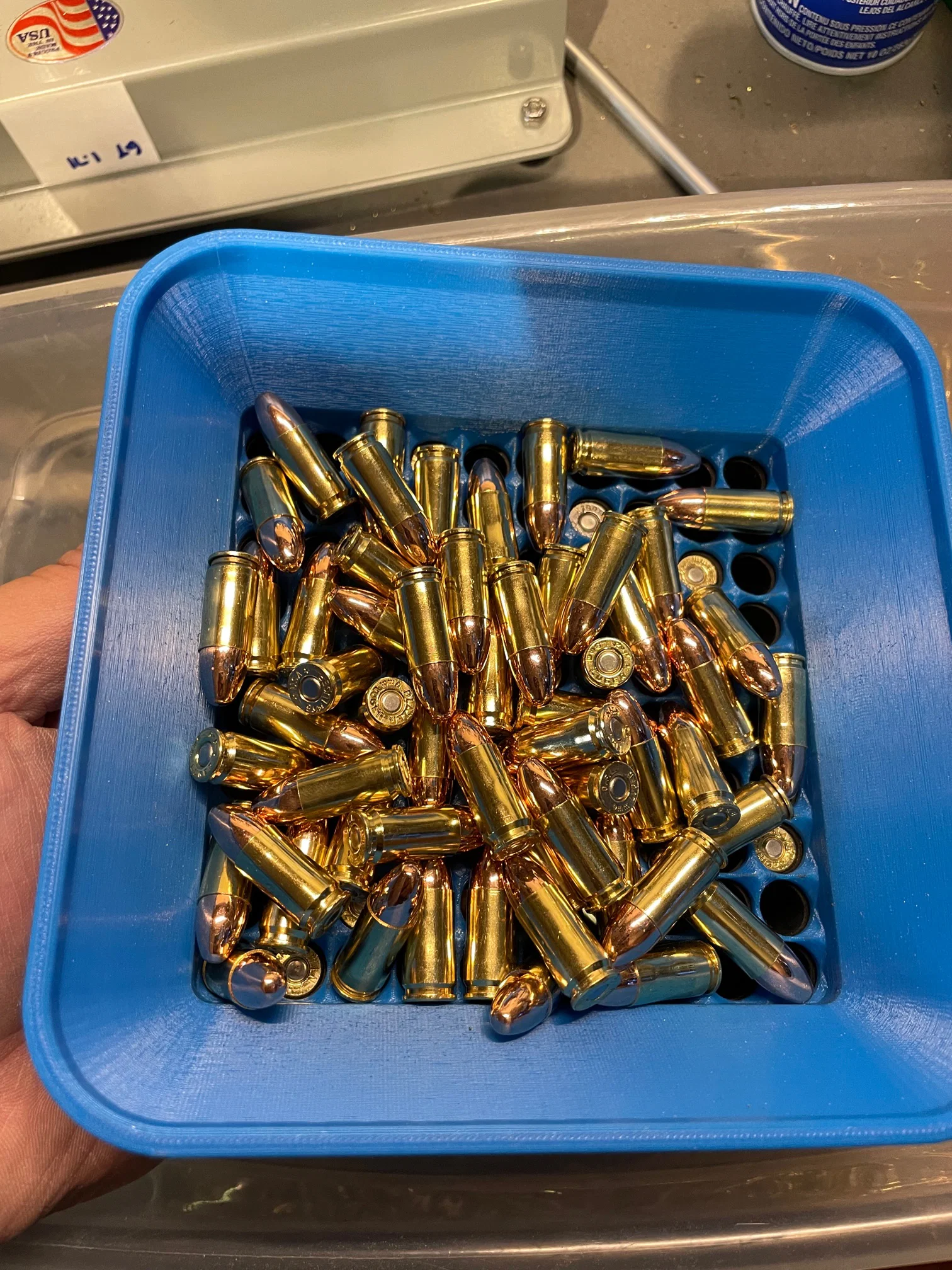 Đây là bản mình thử thiết kế một cái funnel cho Armanov 9mm ammo checker / gauge. Thiết kế để in 3D thành 2 phần: một vỏ (shell) dựng đứng bao quanh cái checker, và phần funnel lồng khít vào trong vỏ để dẫn các viên đạn đã nạp vào gauge.