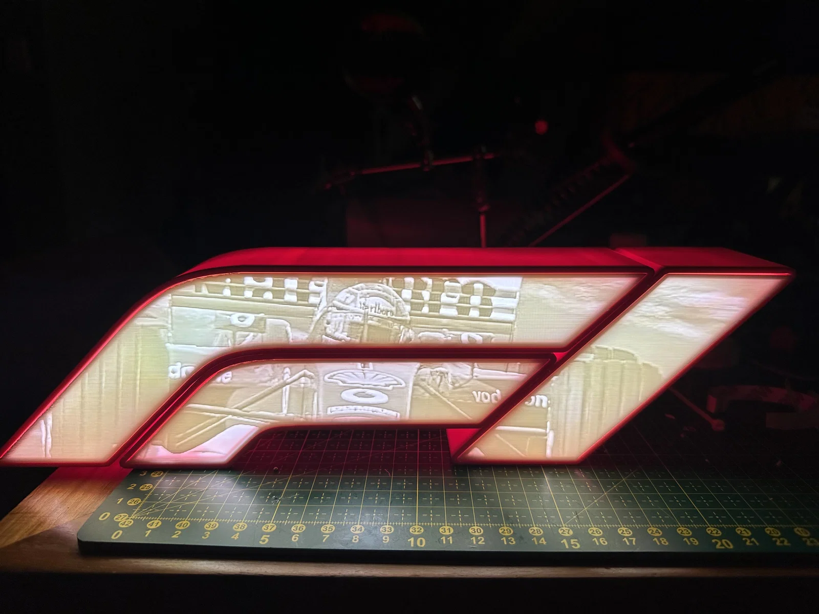 Mẫu lightbox dạng litho kiểu logo Formula 1 với hình xe của Michael Schumacher trên nắp. Có sẵn file có lỗ và không lỗ để đi dây LED strips. Gợi ý in: hộp in phẳng không support, nắp dựng đứng 0.1 layer, 99% infill.