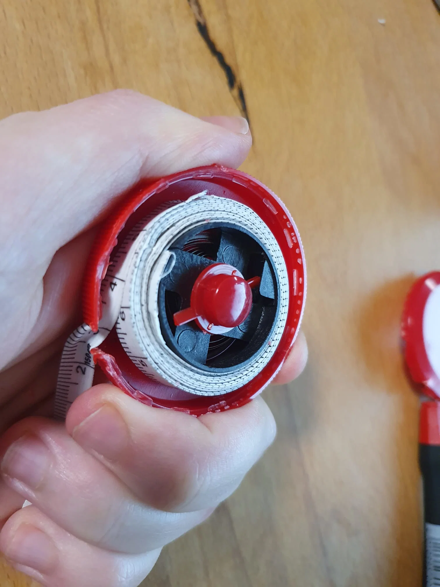 Bản remix này nhắm giải quyết vấn đề đó bằng cách dùng một lò xo kim loại lấy từ những thước dây tự rút giá rẻ. Bạn có thể mua mấy cây thước này với giá rất rẻ trên Amazon. Mình trả 10€ cho 8 cái. Ban đầu mình không thích ý tưởng mua thước rồi bỏ hết mọi thứ trừ cái lò xo, nhưng mình thật sự không tìm ra cách nào khác để kiếm được loại lò xo như vậy.