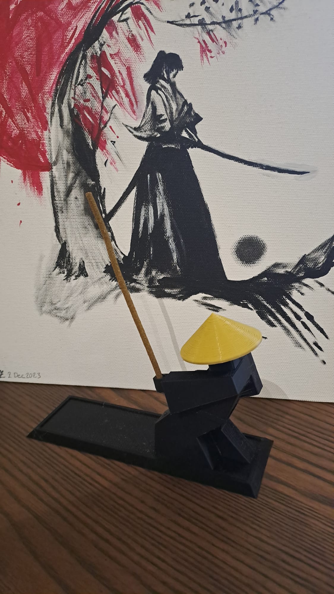 - Khuyến nghị in 3D: Nên sử dụng chất liệu PLA hoặc PETG vì chúng có độ bền tốt và chịu được nhiệt độ nhẹ từ nhang. Bạn nên thiết lập layer height khoảng 0.16mm - 0.2mm để các chi tiết của nhân vật Samurai được sắc nét và mượt mà nhất.
