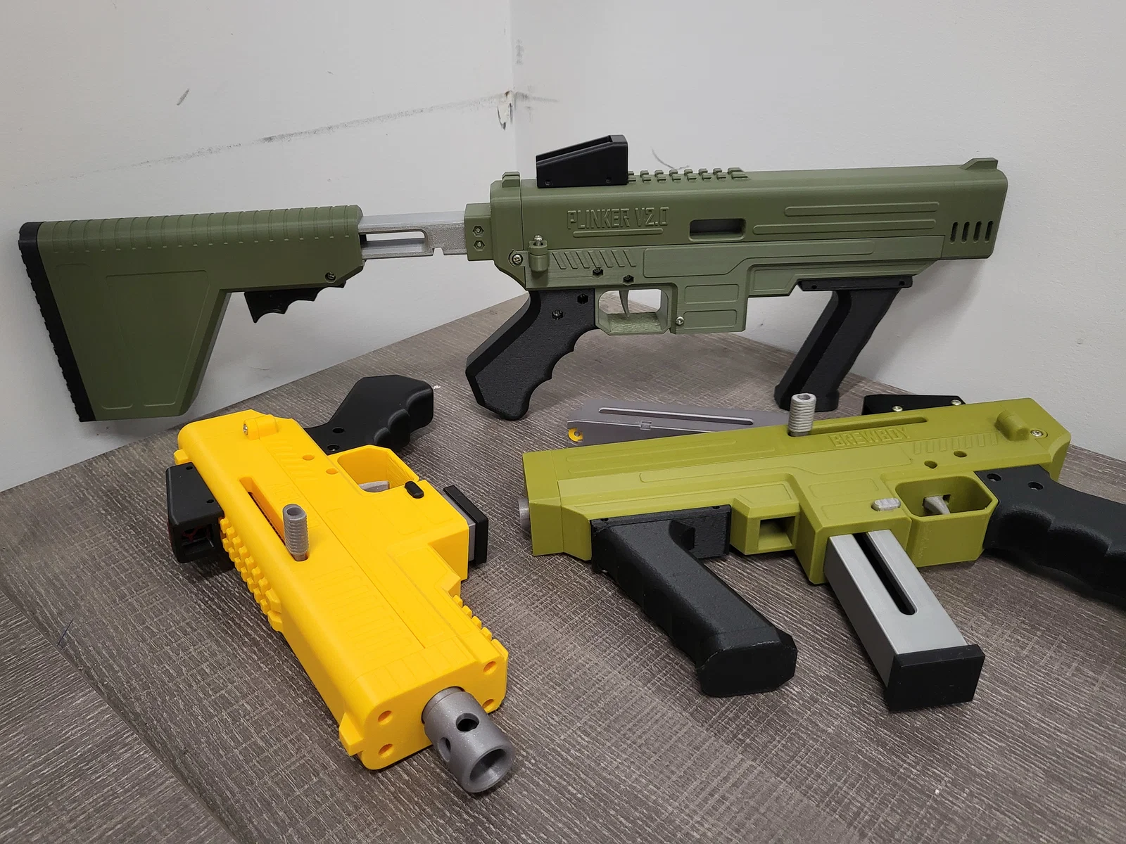 Mẫu thứ hai trong series plinker kiểu “văng vỏ” của mình. Bản V2.0 có magazine nạp từ dưới và có rail chức năng để gắn phụ kiện. Mình có kèm file STEP nếu bạn muốn tự chỉnh sửa hoặc làm thêm chi tiết. Bản này khá mạnh, nên nhớ dùng biện pháp an toàn phù hợp và tuyệt đối không chĩa vào mặt.