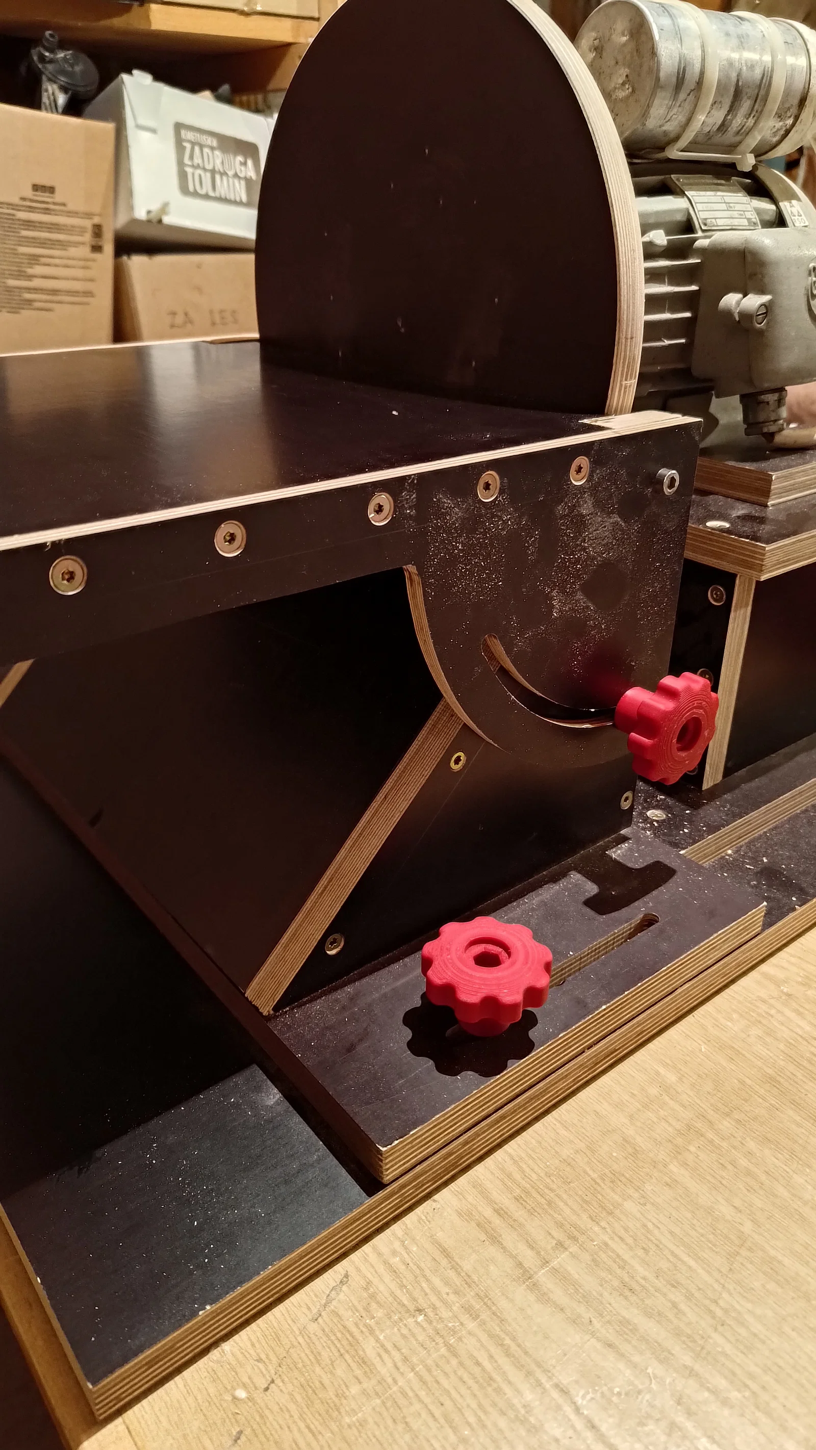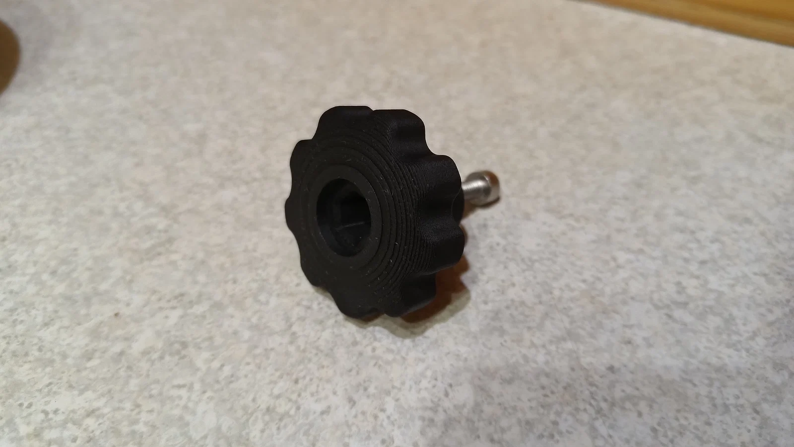 Mình dùng mẫu này cho máy chà nhám đĩa (disc sander) mà ba mình đang làm. Bọn mình đóng một threaded insert vào gỗ và dùng một con bulông M6 trong knob.