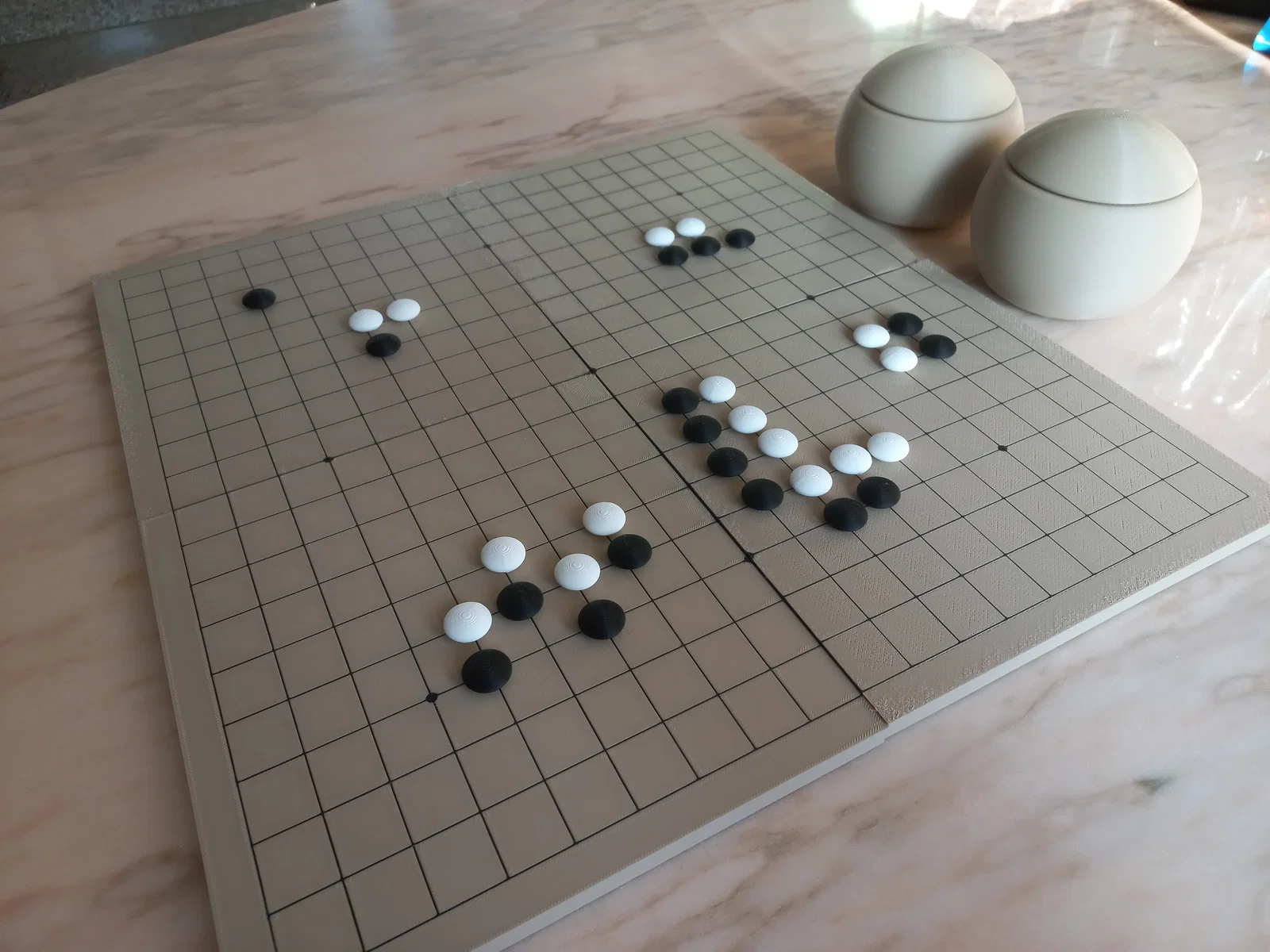 - Mỗi bộ có quân đen và quân trắng, đại diện cho hai người chơi. Để đủ bộ hoàn chỉnh, bạn cần in 180 quân trắng và 181 quân đen.