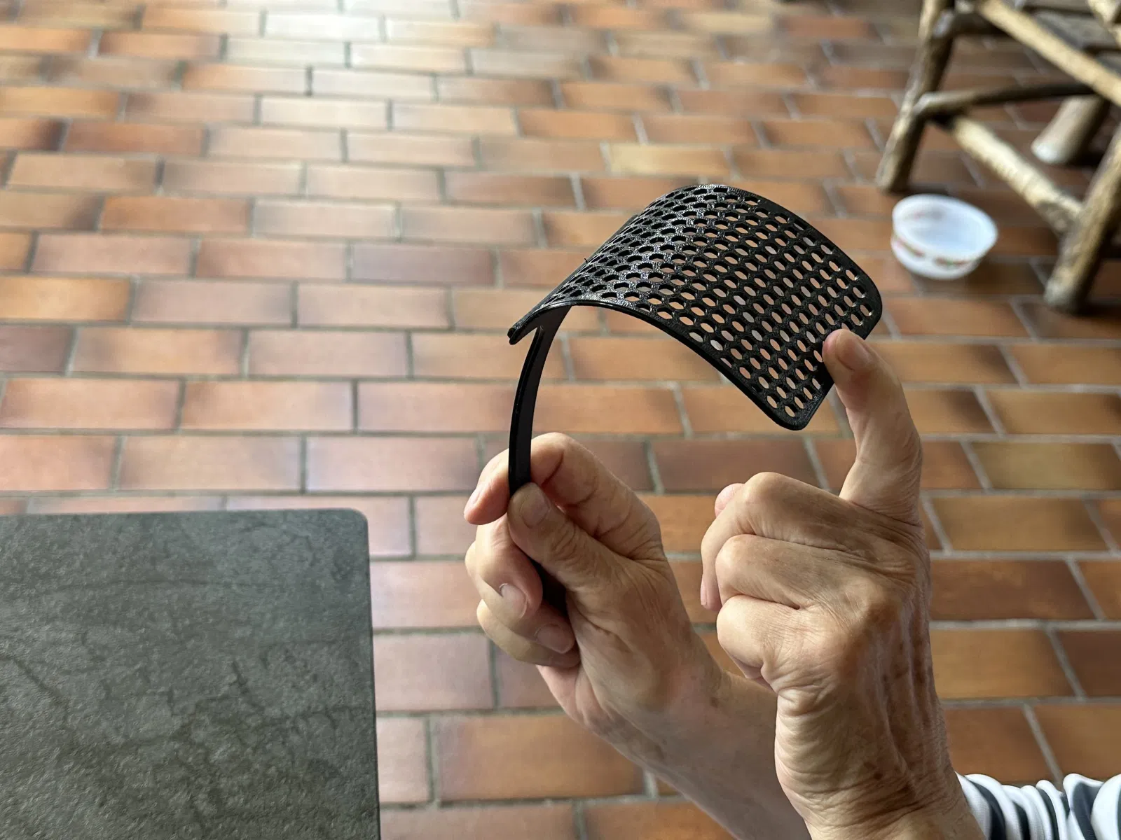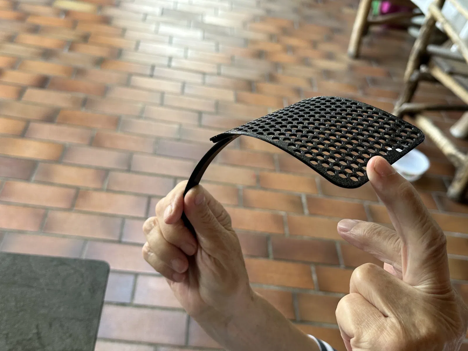 Hình dạng và kích thước: Cái đập ruồi có hình dạng dài, giống như một cái thìa lớn hoặc một cái lưới phẳng. Nó dài khoảng 30 cm và rộng khoảng 10 cm, đủ để vừa với mặt bàn in của máy in 3D Bambulab.