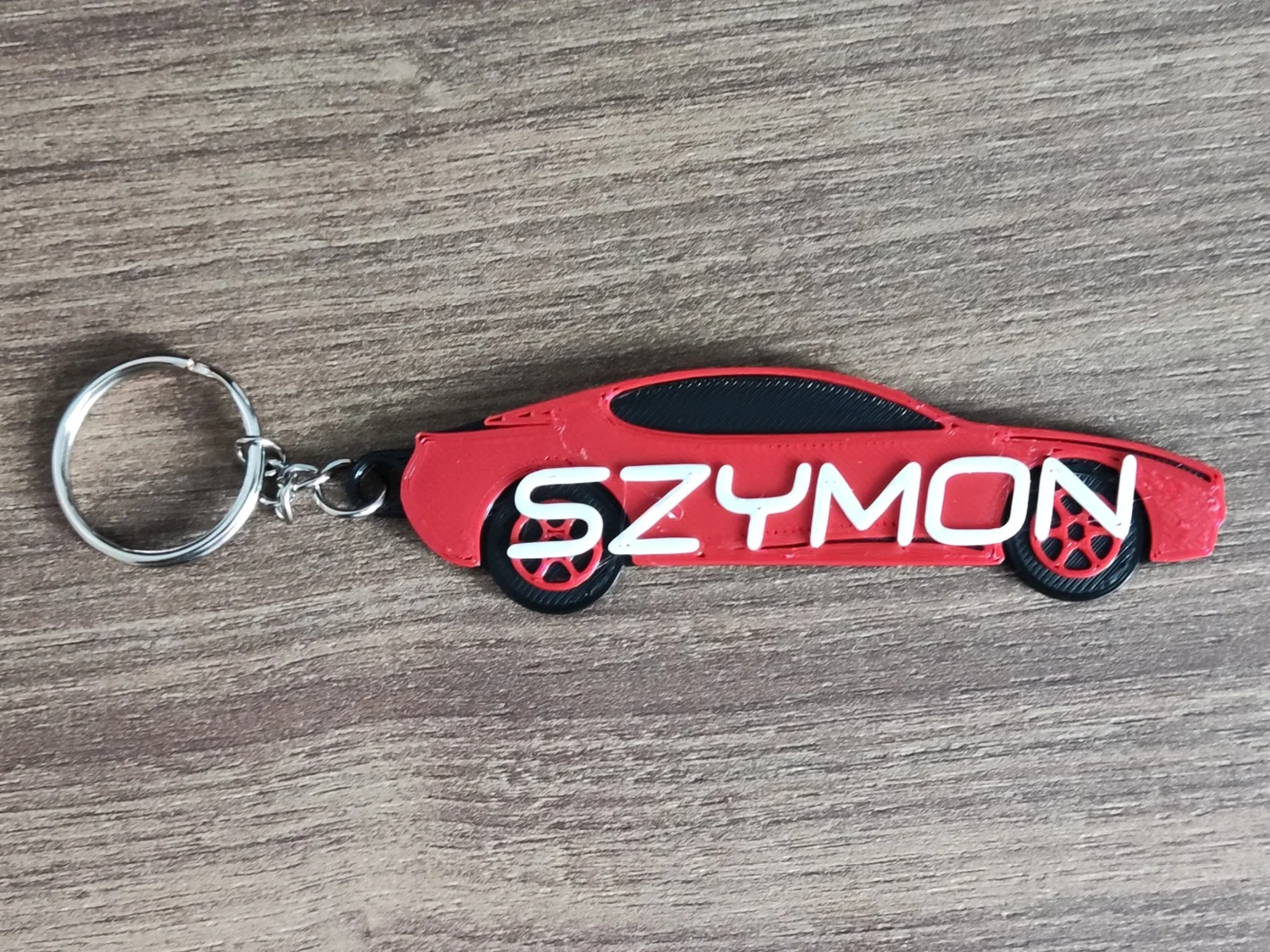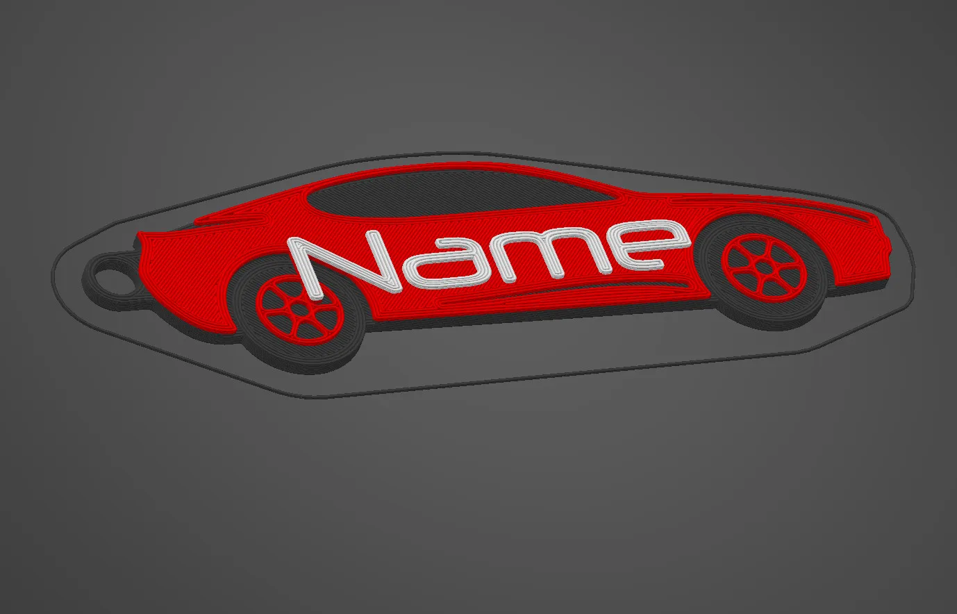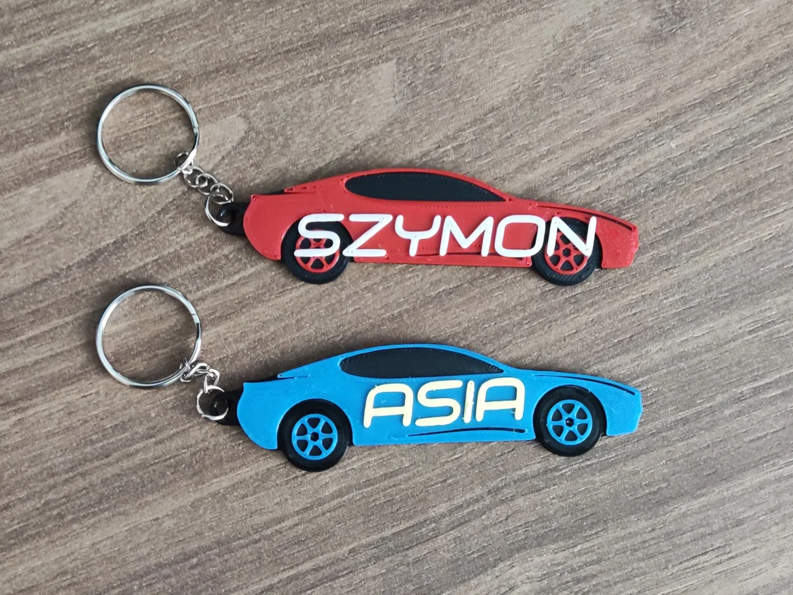 Keychain có hình chiếc xe với tên của bạn trên đó
