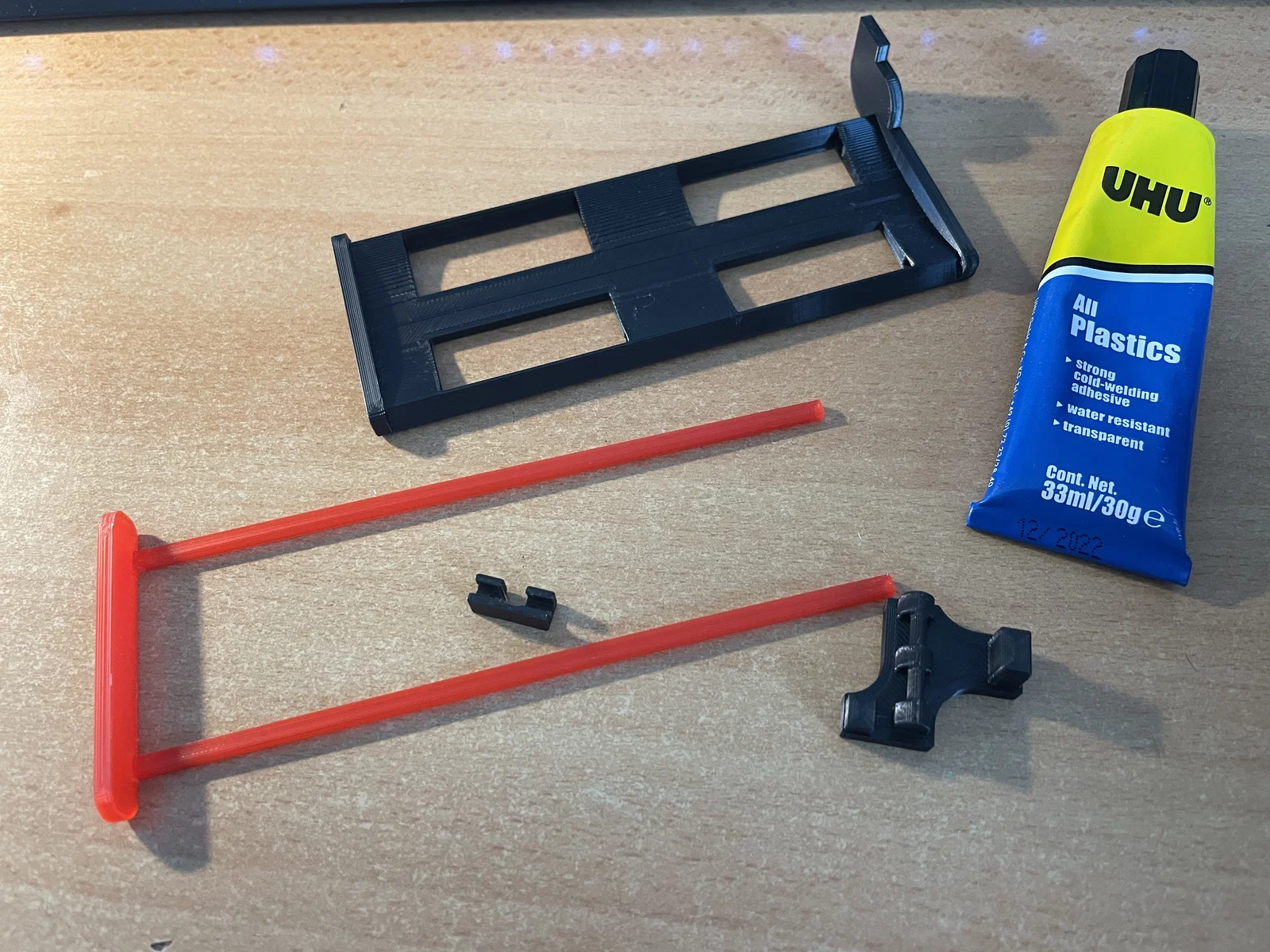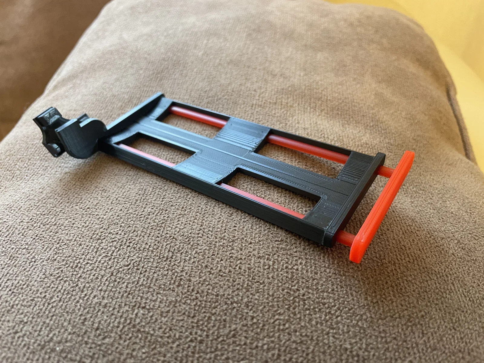 Nó không bị vướng nếu ai đó lắp display hoặc điện thoại trên base, hoặc nếu đang gắn cooler. Cần có một bề mặt ở phía dưới để đỡ phần đáy của base. Bạn cần keo dán cho điểm pivot, nơi bạn có thể snap cái tay quay (knob) vào. Lúc đầu mình cũng ngại in phần base, nhưng không sao, máy in xử lý bridging rất ổn. Mình lười in rodend rồi dán vào đầu slider, nên mình dùng dao nung nóng làm biến dạng nó để không bị kéo tuột ra phía trước.