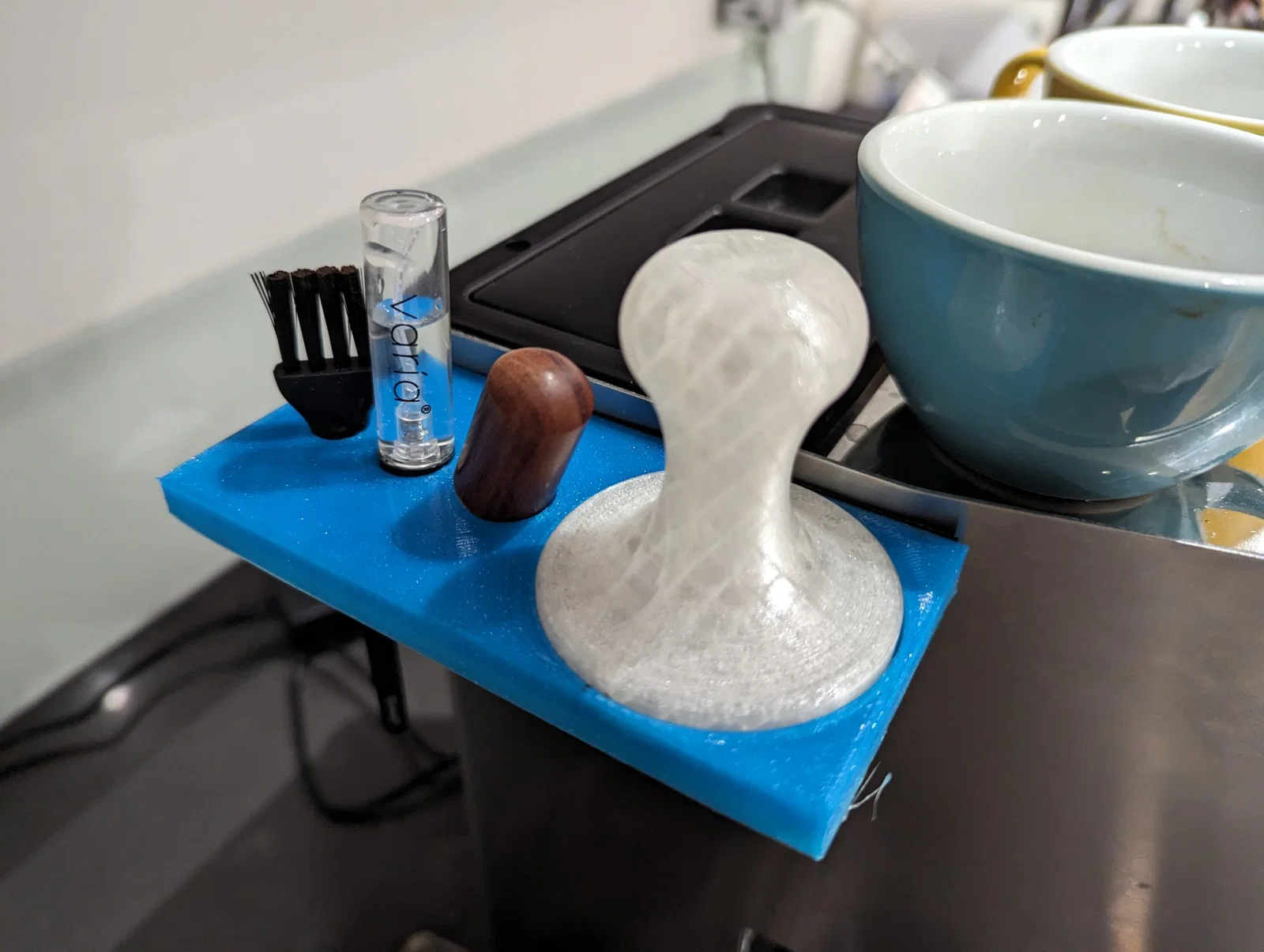 Một giá đỡ cho các phụ kiện pha cà phê của bạn, dính vào bề mặt máy thông qua nam châm.
