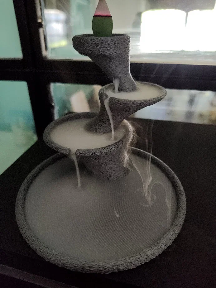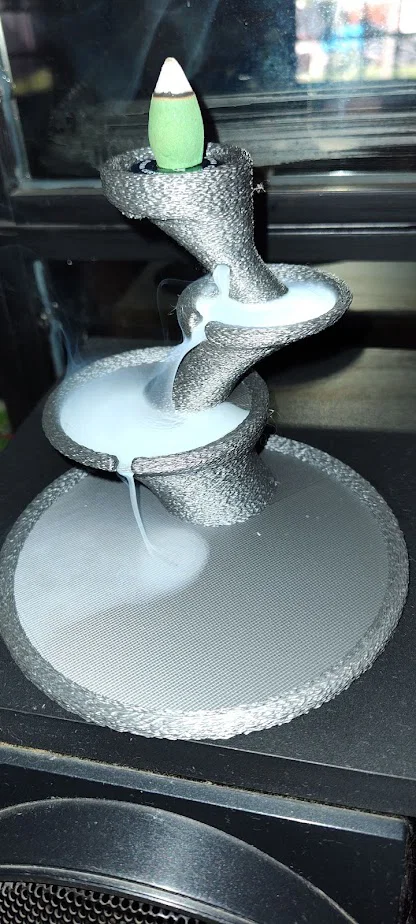 Cascada de humo là mẫu porta saumerio (đế/giá đốt nhang) tạo hiệu ứng khói chảy kiểu “thác”. Gợi ý in trên Ender 3 v2: 70mm/s, 3 walls, nozzle 0.4, tree supports và bật Fuzzy skin.