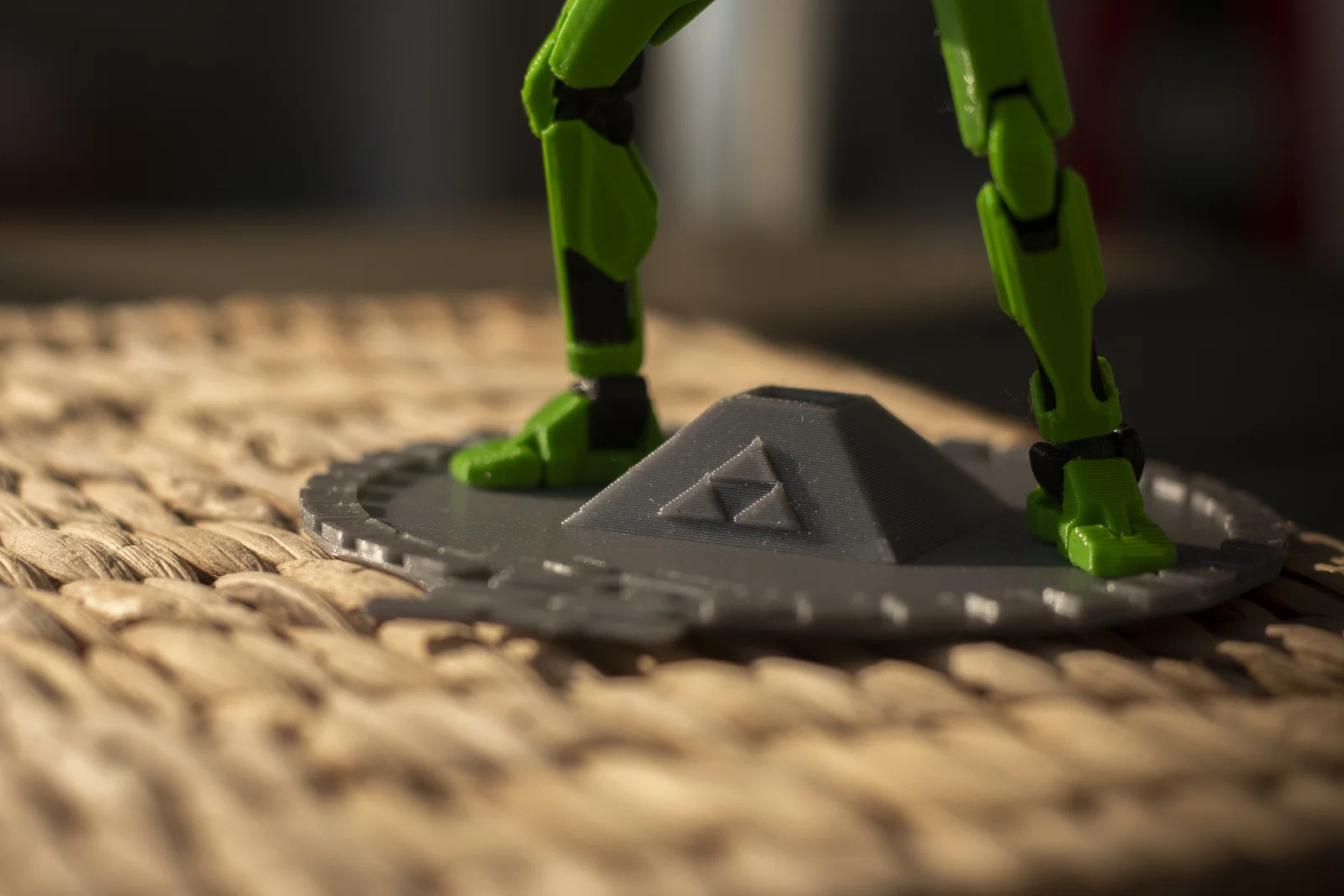 Đế 3D printable cho Master Sword với họa tiết Triforce, remix từ DUMMY 13. Thiết kế chắc chắn, đứng vững, phù hợp trưng bày hoặc làm giá đỡ cho bản replica. Có thông số kích thước và mẹo in PLA/PETG.