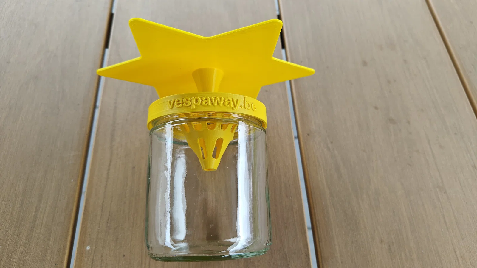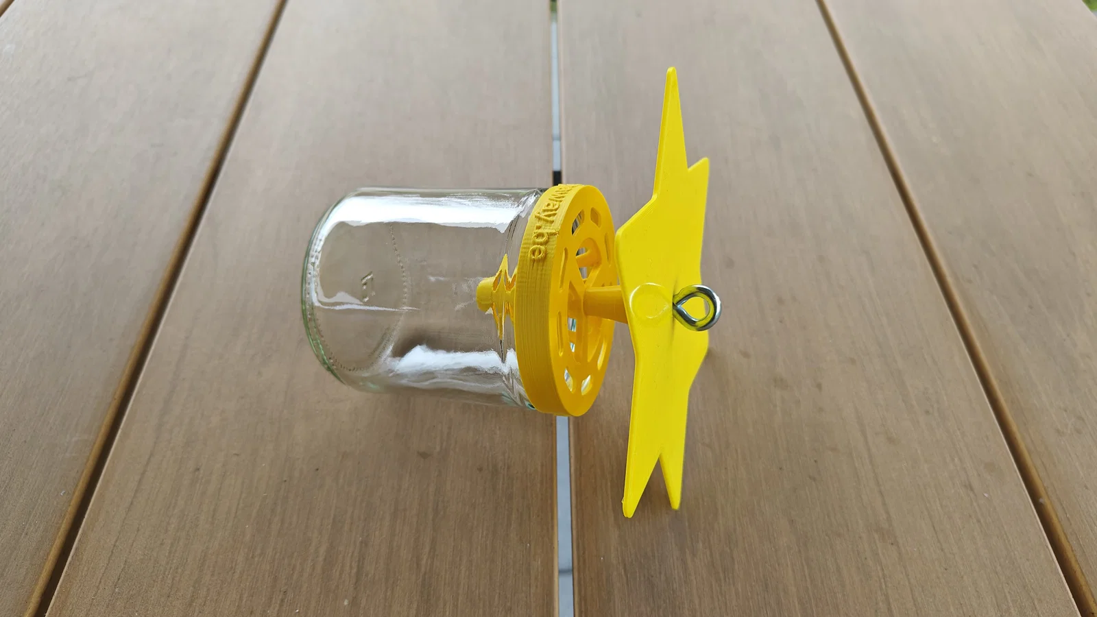 Bẫy chọn lọc dành cho Asian hornet, lắp vừa hũ mật ong kiểu Weck và cả hũ TOC63. Có thể treo hoặc đặt phẳng trên nắp đỡ. In PLA không cần supports (0.2mm, nozzle 0.4mm).